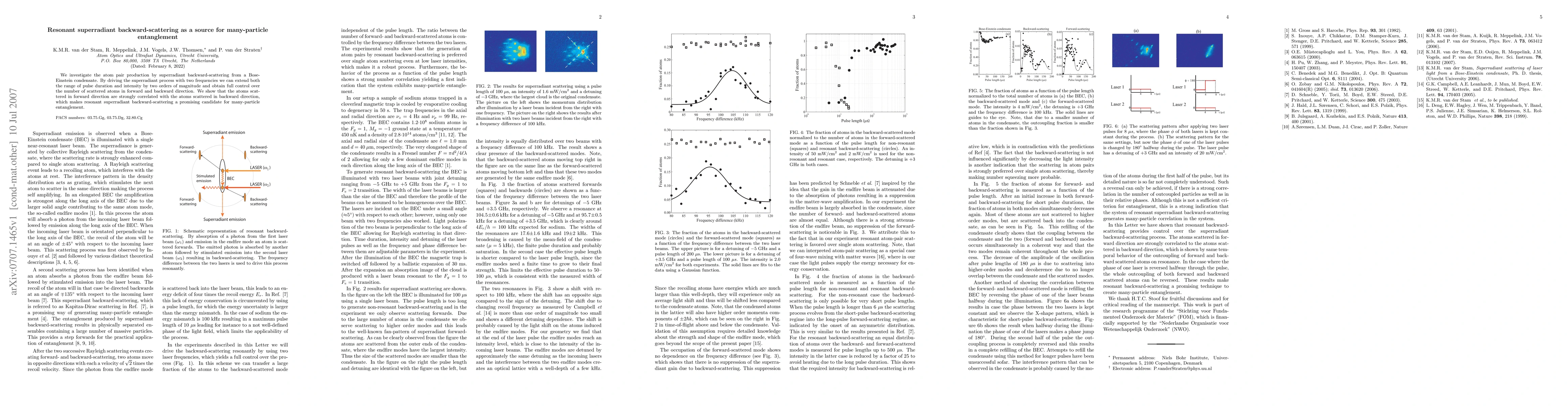 This paper explores the production of atom pairs via superradiant backward-scattering from a Bose-Einstein condensate, demonstrating control over atom scattering in both forward and backward directions. The study reveals strong correlations between forward and backward scattered atoms, indicating resonant superradiant backward-scattering as a potential source for many-particle entanglement.