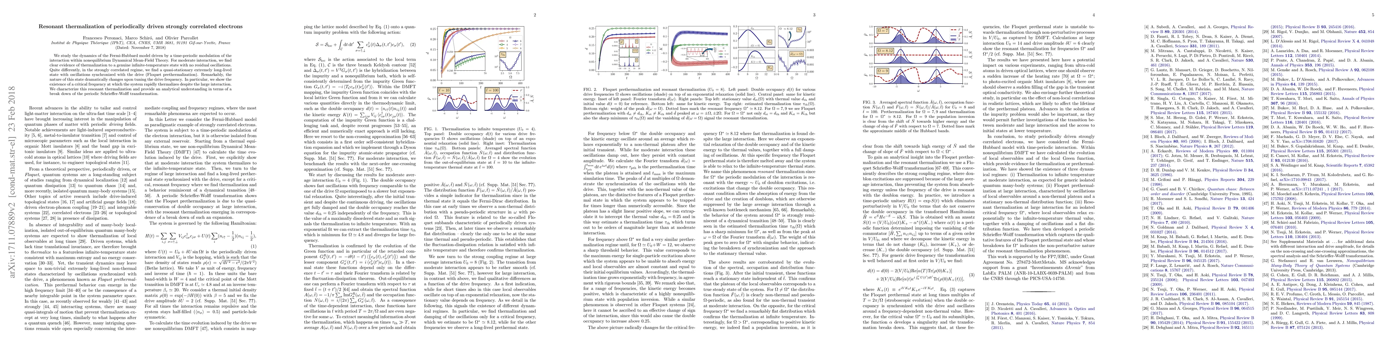 We study the dynamics of the Fermi-Hubbard model driven by a time-periodic modulation of the interaction within nonequilibrium Dynamical Mean-Field Theory. For moderate interaction, we find clear evidence of thermalization to a genuine infinite-temperature state with no residual oscillations. Quite differently, in the strongly correlated regime, we find a quasi-stationary extremely long-lived state with oscillations synchronized with the drive (Floquet prethermalization). Remarkably, the nature of this state dramatically changes upon tuning the drive frequency. In particular, we show the existence of a critical frequency at which the system rapidly thermalizes despite the large interaction. We characterize this resonant thermalization and provide an analytical understanding in terms of a break down of the periodic Schrieffer-Wolff transformation.