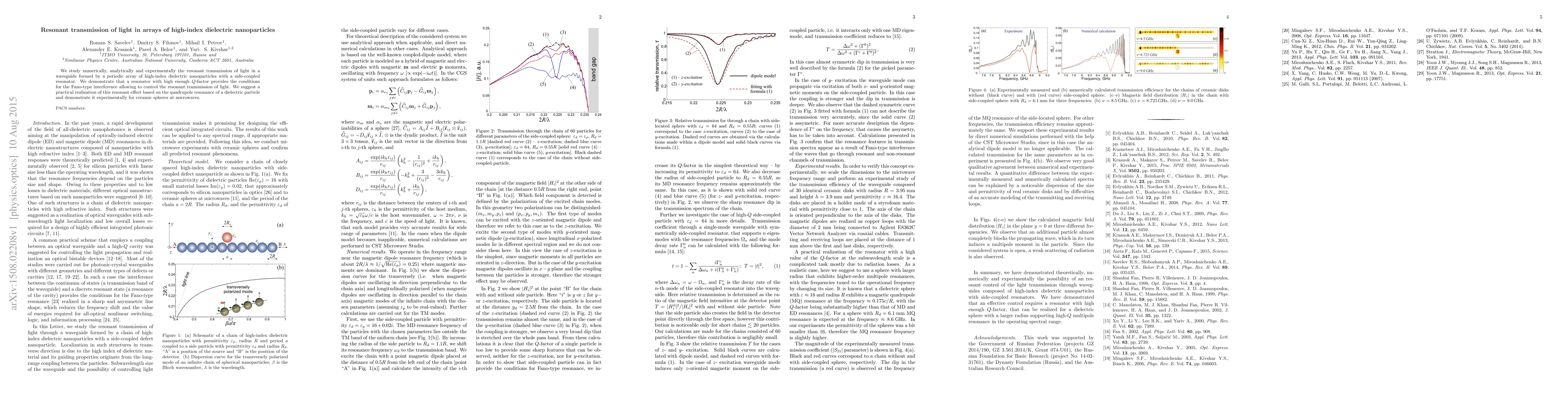 Researchers study light transmission through arrays of high-index nanoparticles, demonstrating a Fano-type interference effect that allows for controlling resonant transmission based on Q-factor, and experimentally verify this effect with ceramic spheres at microwaves.