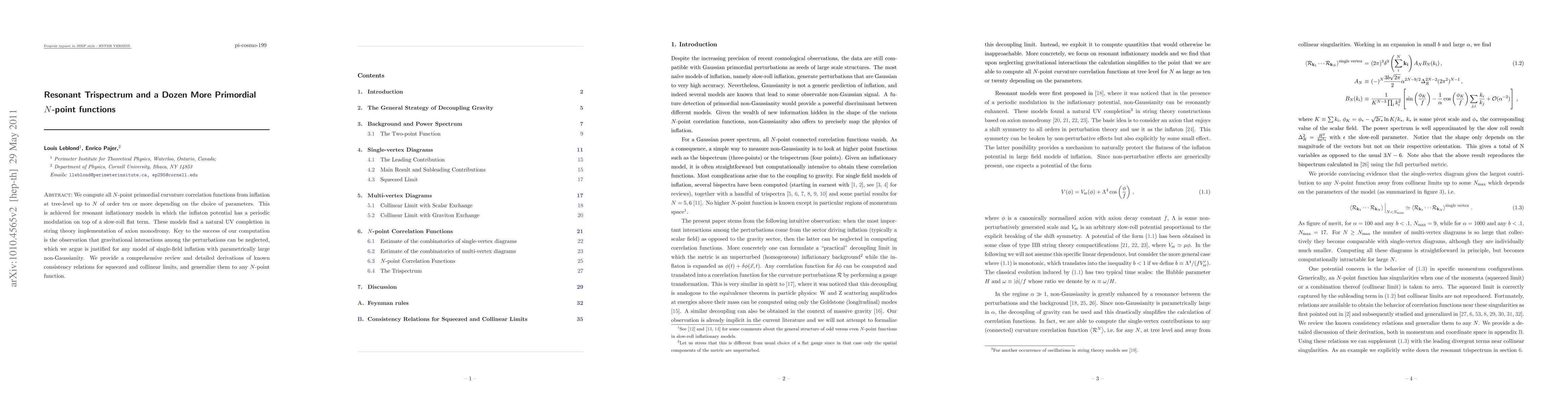 We compute all N-point primordial curvature correlation functions from inflation at tree-level up to N of order ten or more depending on the choice of parameters. This is achieved for resonant inflationary models in which the inflaton potential has a periodic modulation on top of a slow-roll flat term. These models find a natural UV completion in string theory implementation of axion monodromy. Key to the success of our computation is the observation that gravitational interactions among the perturbations can be neglected, which we argue is justified for any model of inflation with parametrically large non-Gaussianity. We provide a comprehensive review and detailed derivations of known consistency relations for squeezed and collinear limits, and generalize them to any N-point function.