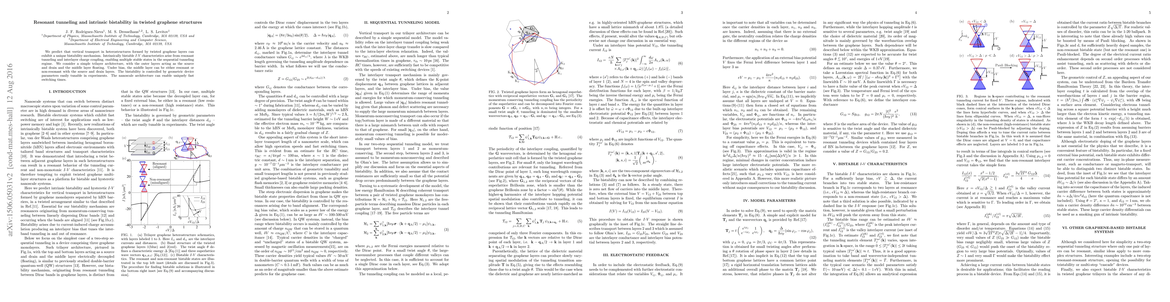 This paper predicts that twisted graphene layer heterostructures exhibit intrinsic bistability through resonant tunneling and interlayer charge coupling, enabling multiple stable states. The proposed trilayer architecture allows for fast switching times, with bistability controlled by easily tunable geometric parameters.
