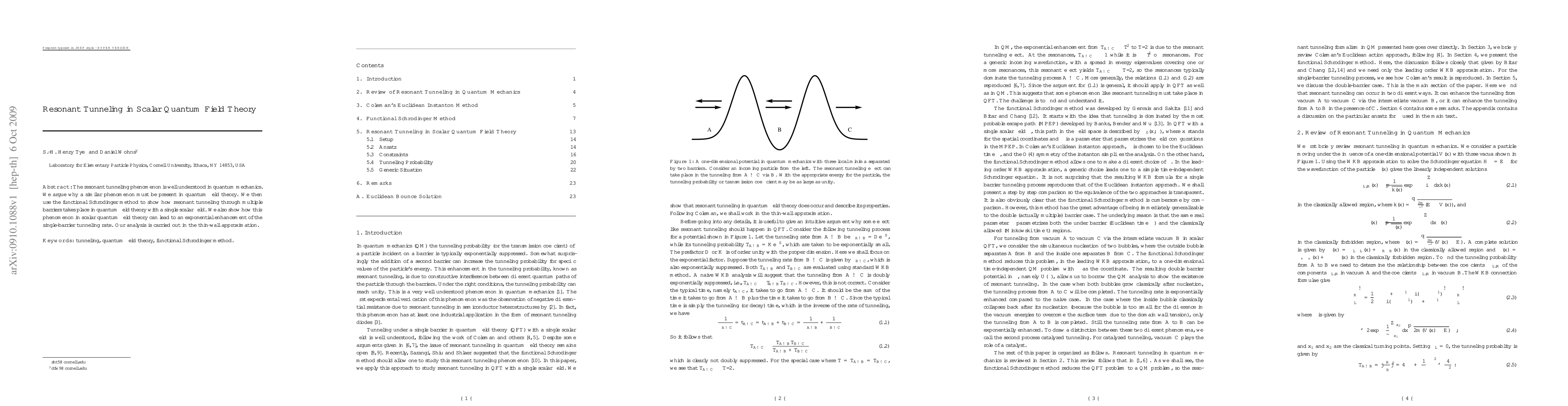 This paper explores resonant tunneling in scalar quantum field theory, demonstrating its occurrence through multiple barriers using the functional Schrödinger method. It reveals an exponential enhancement of the tunneling rate in the thin-wall approximation, extending the concept from quantum mechanics to quantum field theory.
