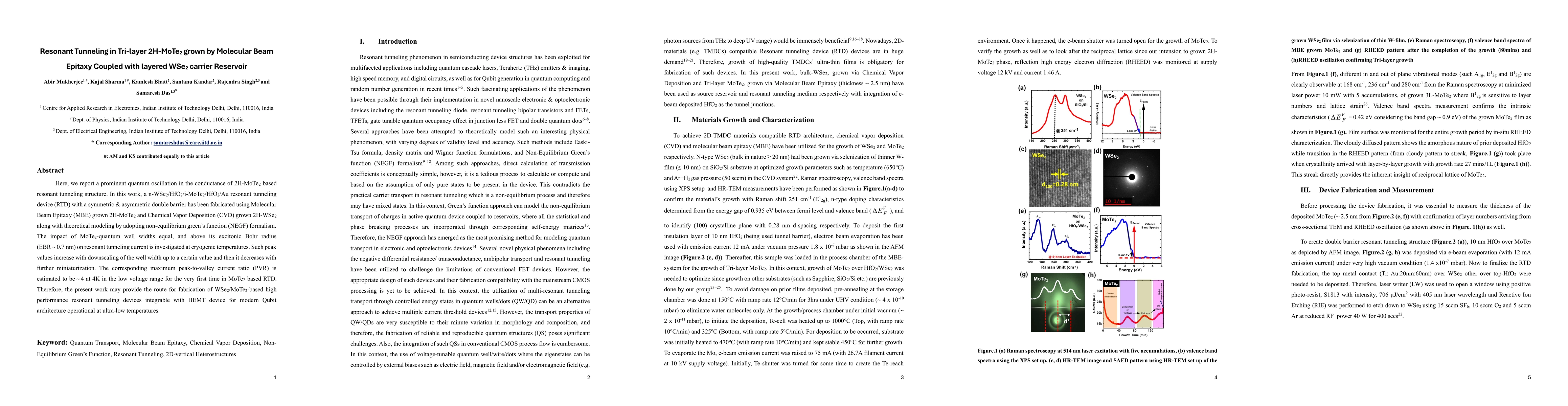 Researchers have created a resonant tunneling device using 2H-MoTe2 and WSe2, achieving a record peak-to-valley current ratio of 4 at 4K, paving the way for high-performance Qubit architecture.