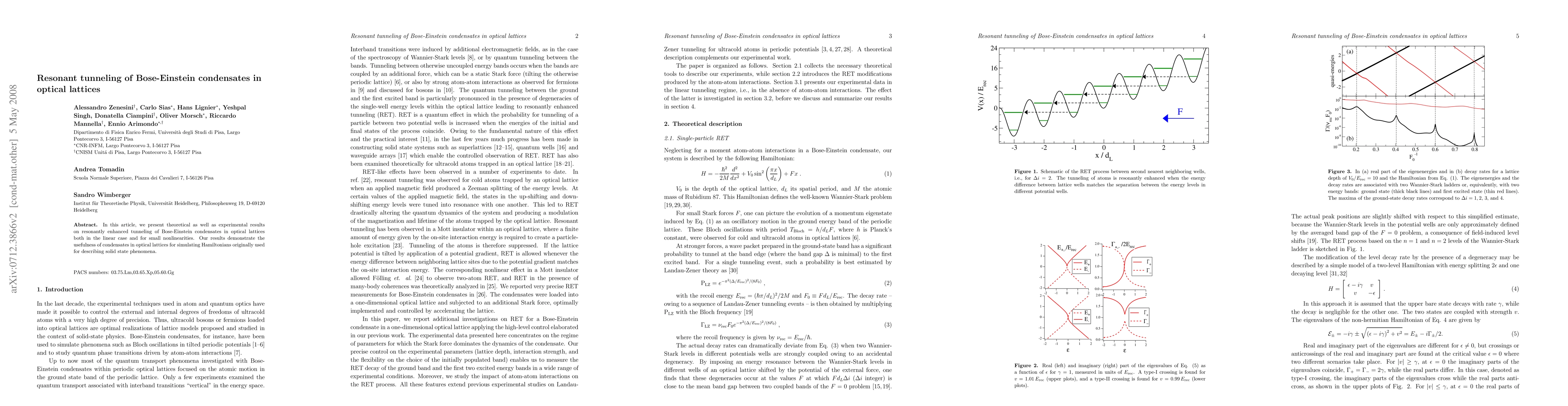 Summary: This study investigates both theoretically and experimentally the resonant tunneling of Bose-Einstein condensates in optical lattices, highlighting their utility in simulating solid-state Hamiltonians, even under small nonlinear effects.