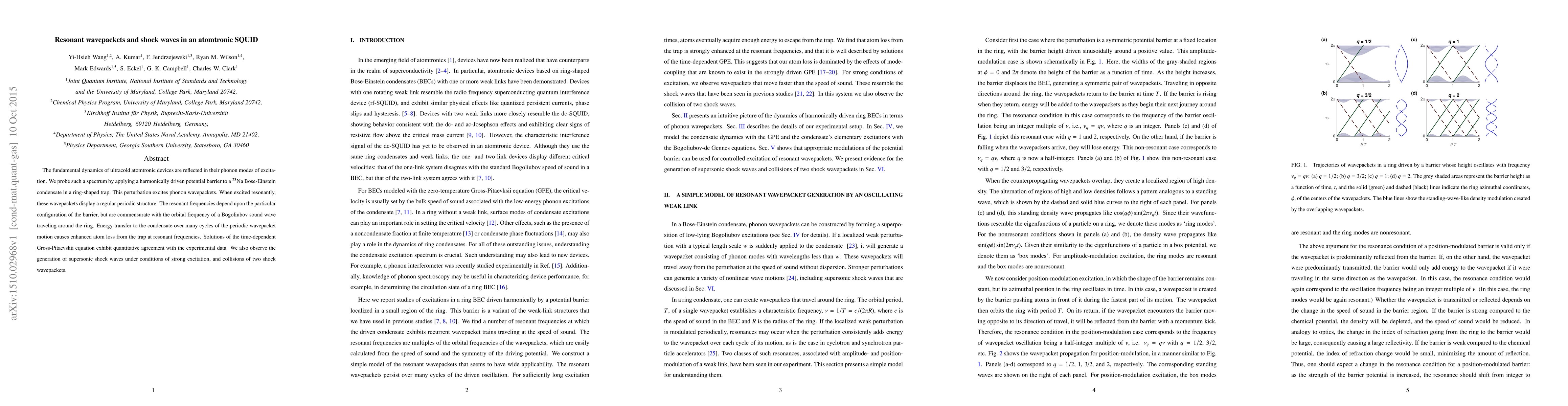 This paper investigates the phonon dynamics in an atomtronic SQUID using a harmonically driven potential barrier on a $^{23}$Na Bose-Einstein condensate, revealing resonant wavepackets and shock waves, with the latter resulting from strong excitation and showing agreement with the Gross-Pitaevskii equation.