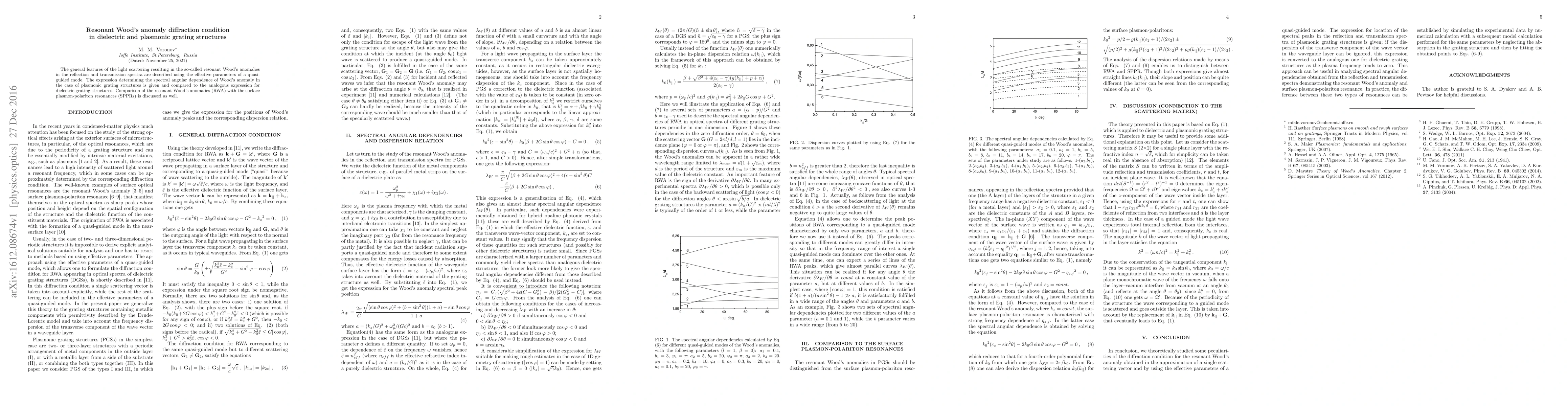 This paper investigates the resonant Wood's anomaly diffraction conditions in both dielectric and plasmonic grating structures, providing a detailed expression for the spectral angular dependence of these anomalies and comparing it to surface plasmon-polariton resonances. The study highlights the differences and similarities between RWA and SPPRs.