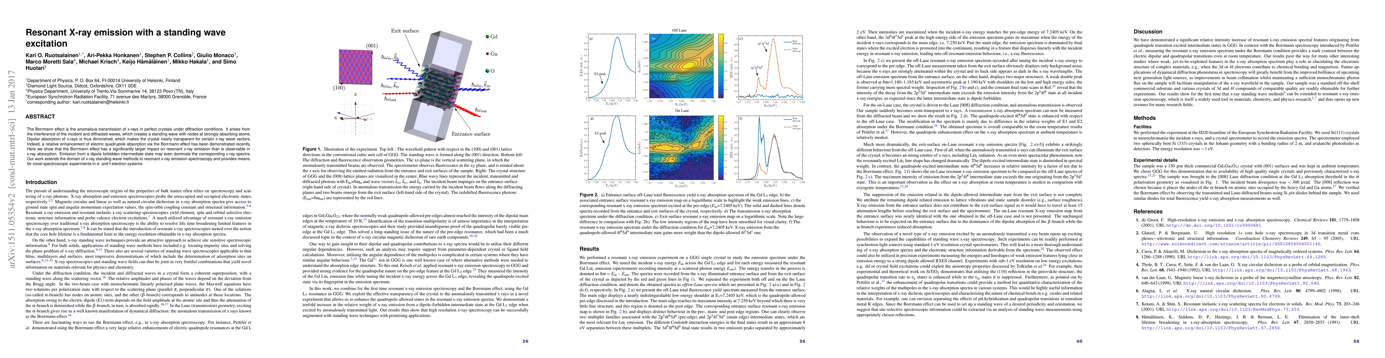 This paper demonstrates that the Borrmann effect significantly enhances resonant x-ray emission spectroscopy, particularly in dipole forbidden intermediate states, and extends the application of x-ray standing wave methods to this domain, offering new insights into d- and f-electron systems.