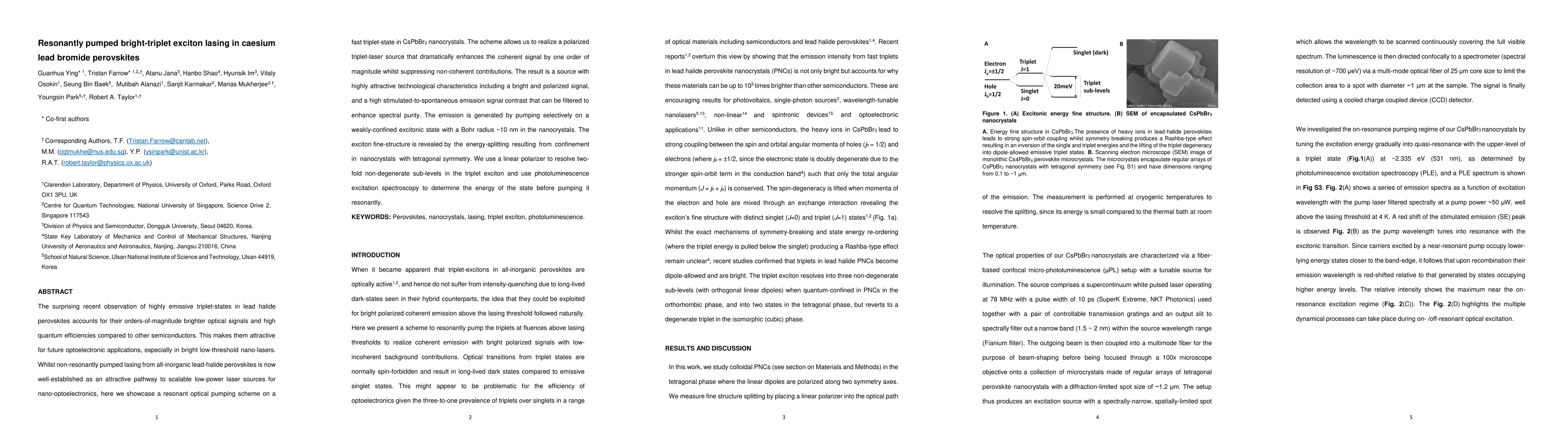 The surprising recent observation of highly emissive triplet-states in lead halide perovskites accounts for their orders-of-magnitude brighter optical signals and high quantum efficiencies compared to other semiconductors. This makes them attractive for future optoelectronic applications, especially in bright low-threshold nano-lasers. Whilst non-resonantly pumped lasing from all-inorganic lead-halide perovskites is now well-established as an attractive pathway to scalable low-power laser sources for nano-optoelectronics, here we showcase a resonant optical pumping scheme on a fast triplet-state in CsPbBr3 nanocrystals. The scheme allows us to realize a polarized triplet-laser source that dramatically enhances the coherent signal by one order of magnitude whilst suppressing non-coherent contributions. The result is a source with highly attractive technological characteristics including a bright and polarized signal, and a high stimulated-to-spontaneous emission signal contrast that can be filtered to enhance spectral purity. The emission is generated by pumping selectively on a weakly-confined excitonic state with a Bohr radius ~10 nm in the nanocrystals. The exciton fine-structure is revealed by the energy-splitting resulting from confinement in nanocrystals with tetragonal symmetry. We use a linear polarizer to resolve two-fold non-degenerate sub-levels in the triplet exciton and use photoluminescence excitation spectroscopy to determine the energy of the state before pumping it resonantly.