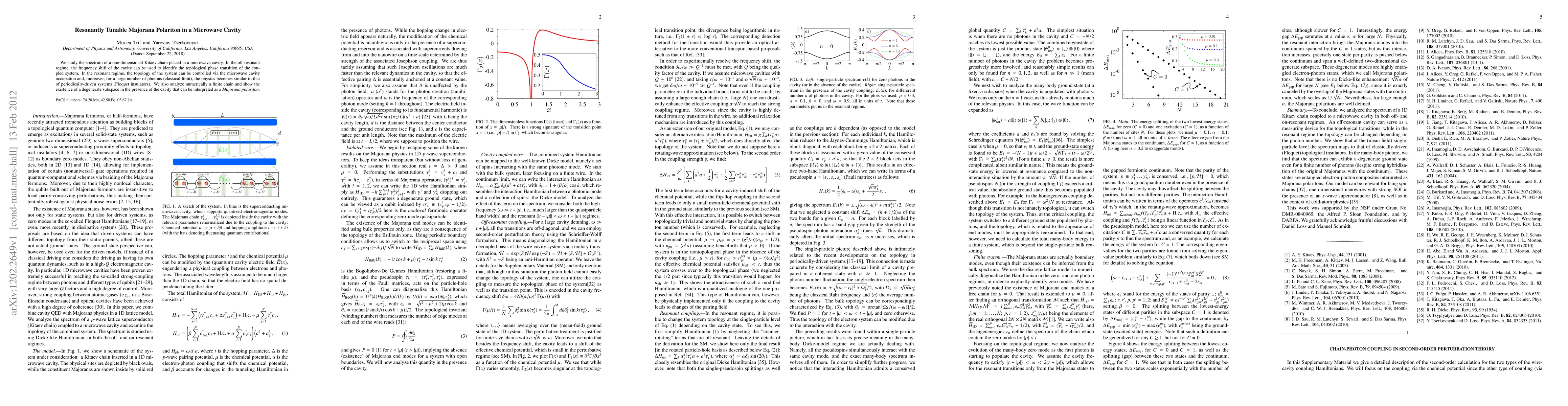 This paper explores the spectrum of a Kitaev chain in a microwave cavity, identifying a topological phase transition via cavity frequency shifts. In the resonant regime, the system's topology is tunable by cavity occupation, resembling Floquet insulators in the classical limit, and introduces a Majorana polariton in the coupled system.