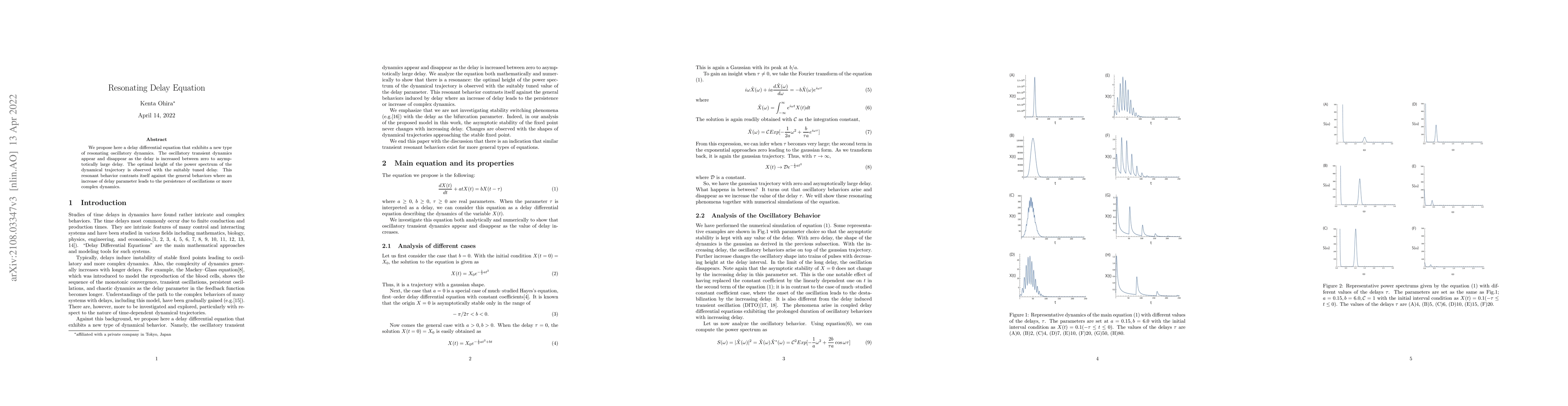 Researchers propose a new delay differential equation that exhibits resonating oscillatory dynamics, where optimal power spectrum is observed with suitably tuned delay.