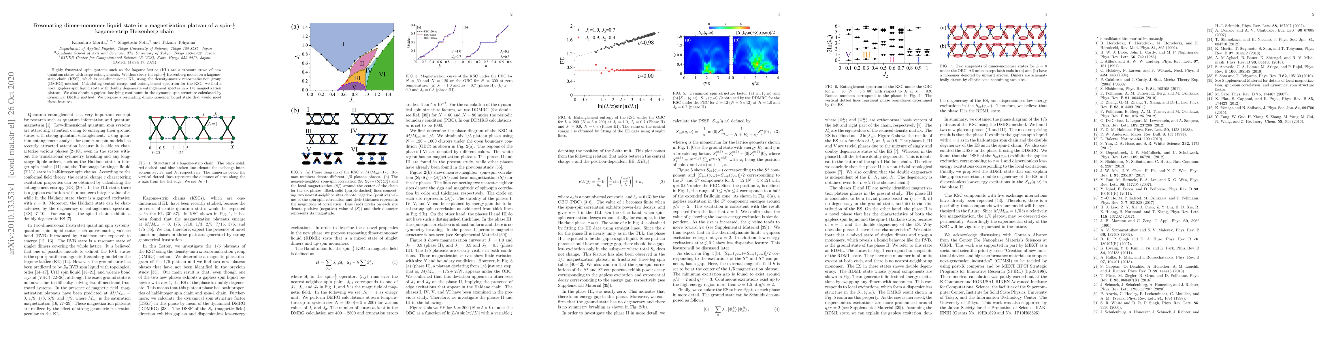 Highly frustrated spin systems such as the kagome lattice (KL) are a treasure trove of new quantum states with large entanglements. We thus study the spin-$\frac{1}{2}$ Heisenberg model on a kagome-strip chain (KSC), which is one-dimensional KL, using the density-matrix renormalization group (DMRG) method. Calculating central charge and entanglement spectrum for the KSC, we find a novel gapless spin liquid state with doubly degenerate entanglement spectra in a 1/5 magnetization plateau. We also obtain a gapless low-lying continuum in the dynamic spin structure calculated by dynamical DMRG method. We propose a resonating dimer-monomer liquid state that would meet these features.