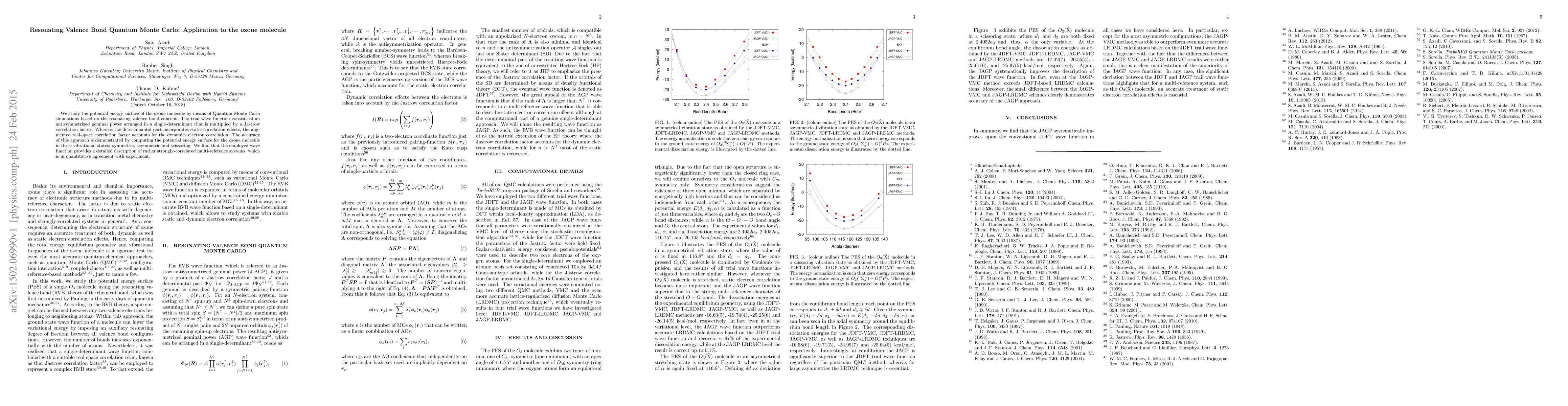 This paper employs Quantum Monte Carlo simulations based on the resonating valence bond concept to study the potential energy surface of the ozone molecule. The method combines an antisymmetrized geminal power determinant with a Jastrow correlation factor, providing accurate descriptions of strongly-correlated multi-reference systems, as demonstrated by agreement with experimental data across three vibrational states.