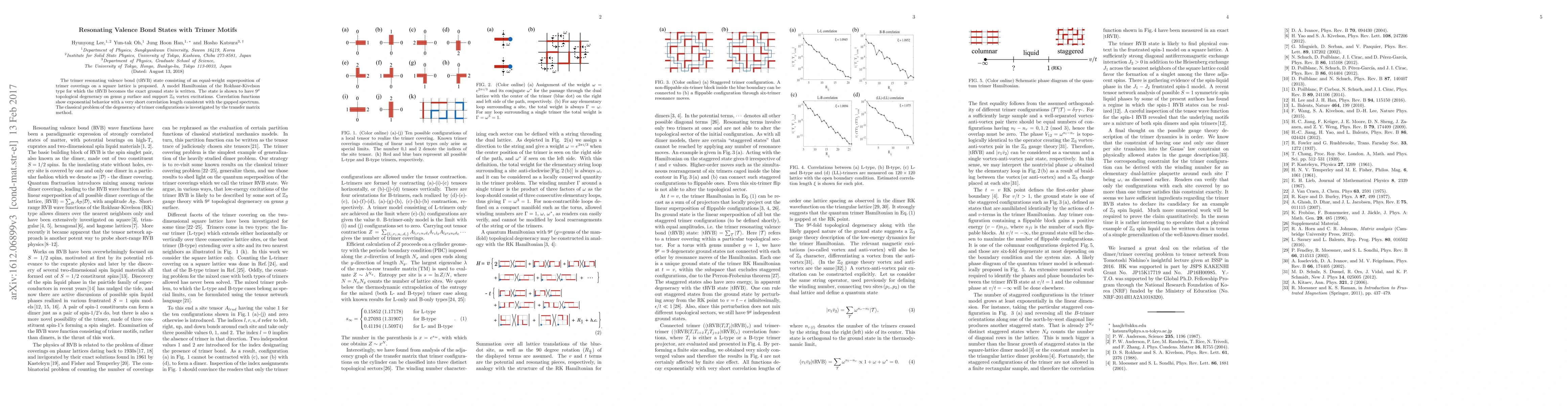 This paper proposes a trimer resonating valence bond state on a square lattice, demonstrating its exact ground state via a Rokhsar-Kivelson-type Hamiltonian. It exhibits $9^g$ topological degeneracy and supports $Z_3$ vortex excitations, with correlation functions showing exponential behavior indicative of a gapped spectrum.