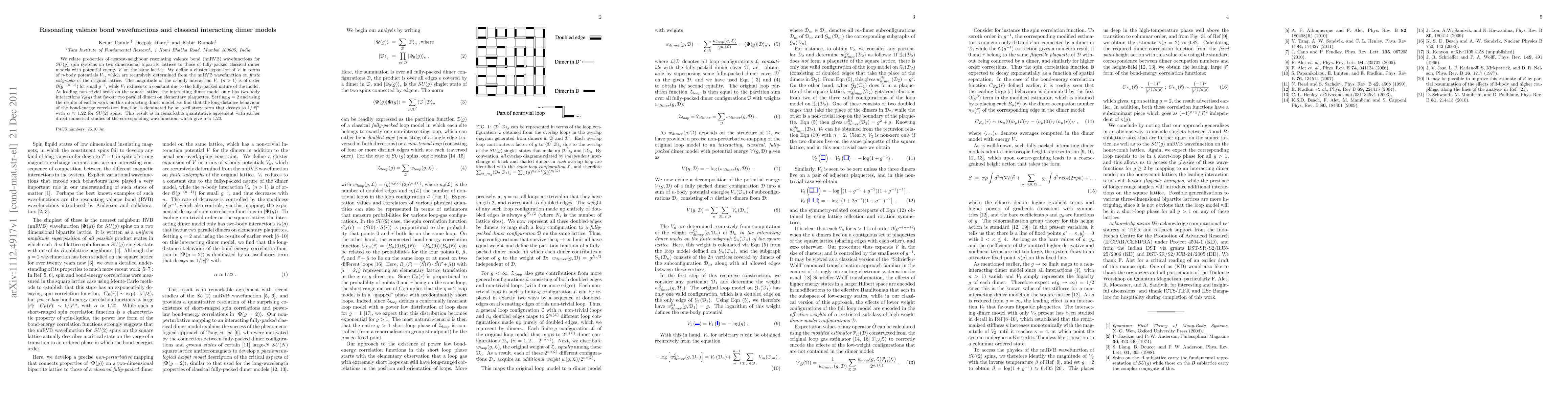 This paper connects the properties of resonating valence bond wavefunctions for $SU(g)$ spin systems to classical dimer models, showing a cluster expansion for the potential energy in terms of $n$-body interactions. The study finds that the long-distance behavior of the bond-energy correlation function is dominated by an oscillatory term that decays as $1/|\vec{r}|^{\alpha}$ with $\alpha \approx 1.22$, matching previous numerical studies.