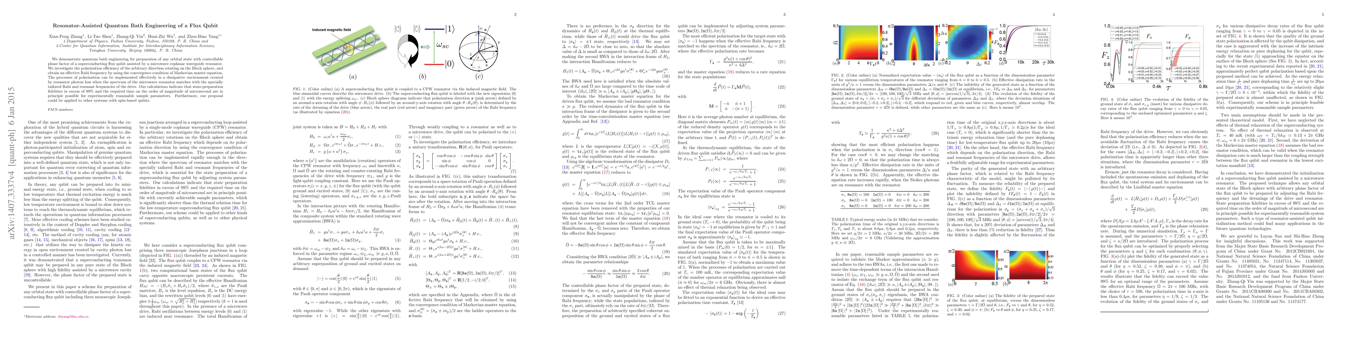 This paper presents a method for quantum bath engineering to prepare any state of a superconducting flux qubit using a microwave resonator, achieving high fidelity state preparation (over 99%) in microseconds. The technique leverages resonator photon loss and tailored Rabi frequencies for effective polarization on the Bloch sphere.