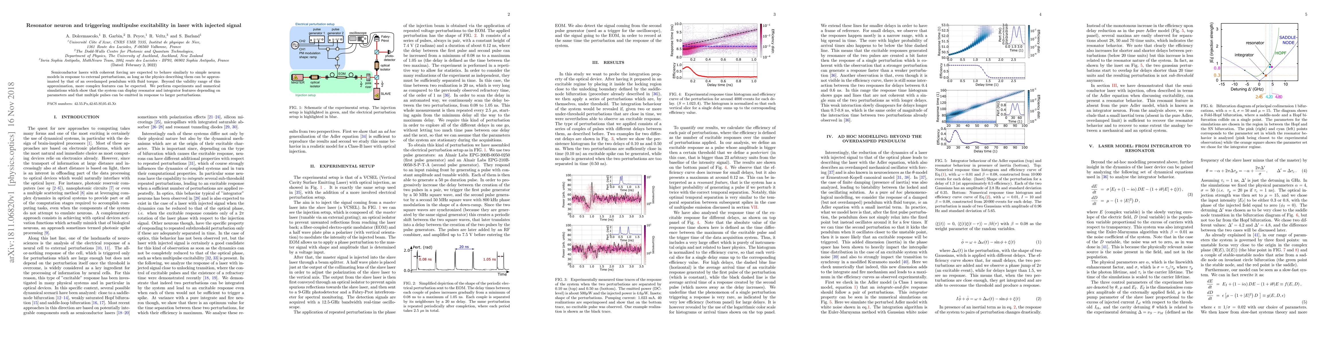 Semiconductor lasers exhibit neuron-like behavior when subjected to external perturbations, producing resonator and integrator features, as well as multiple pulses, depending on parameters.