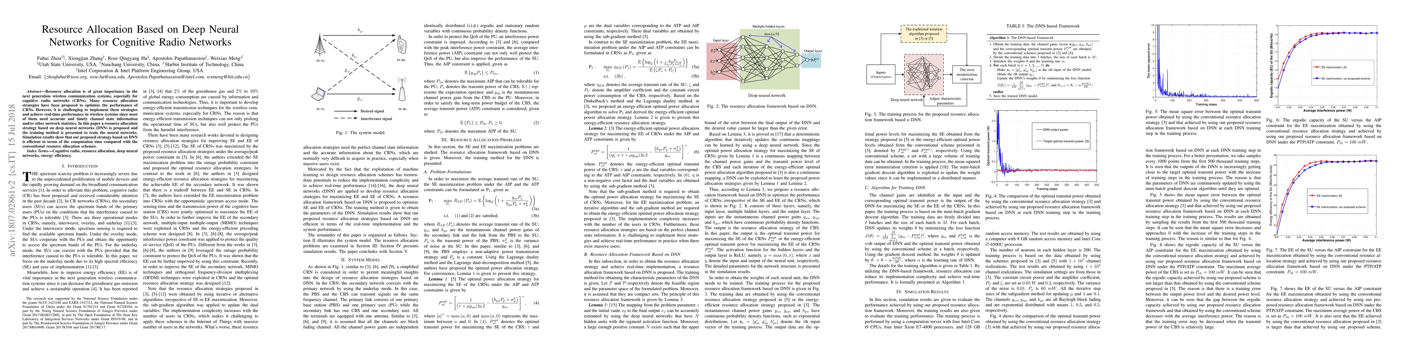 This paper proposes a resource allocation strategy for cognitive radio networks using deep neural networks (DNN) to optimize performance. The trained DNNs demonstrate efficiency in computation time compared to conventional methods.