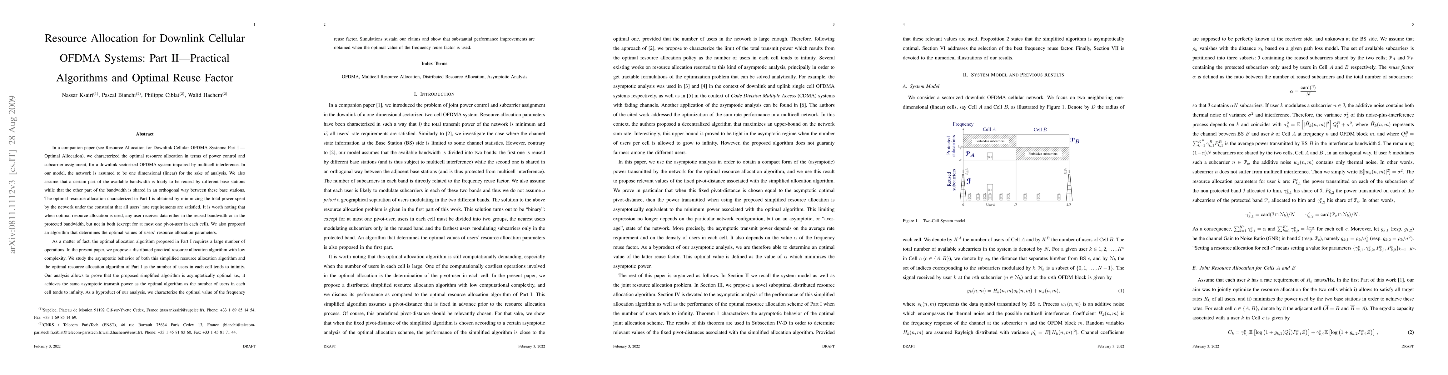 In a companion paper, we characterized the optimal resource allocation in terms of power control and subcarrier assignment, for a downlink sectorized OFDMA system. In our model, the network is assumed to be one dimensional for the sake of analysis. We also assume that a certain part of the available bandwidth is likely to be reused by different base stations while that the other part of the bandwidth is shared in an orthogonal way between these base stations. The optimal resource allocation characterized in Part I is obtained by minimizing the total power spent by the network under the constraint that all users rate requirements are satisfied. When optimal resource allocation is used, any user receives data either in the reused bandwidth or in the protected bandwidth, but not in both (except for at most one pivot-user in each cell). We also proposed an algorithm that determines the optimal values of users resource allocation parameters. The optimal allocation algorithm proposed in Part I requires a large number of operations. In the present paper, we propose a distributed practical resource allocation algorithm with low complexity. We study the asymptotic behavior of both this simplified resource allocation algorithm and the optimal resource allocation algorithm of Part I as the number of users in each cell tends to infinity. Our analysis allows to prove that the proposed simplified algorithm is asymptotically optimal. As a byproduct of our analysis, we characterize the optimal value of the frequency reuse factor.