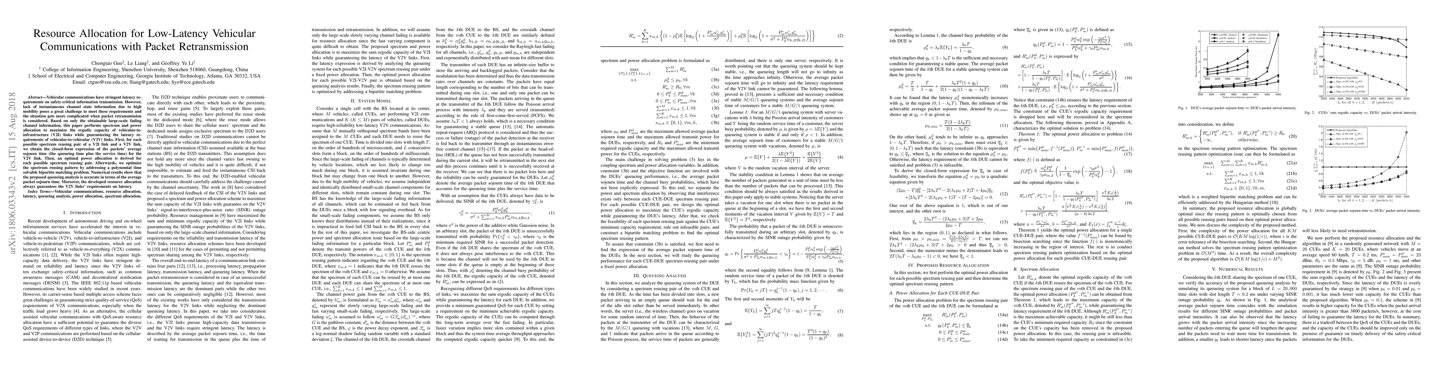 This paper proposes a resource allocation strategy for low-latency vehicular communications, focusing on spectrum and power allocation to maximize V2I link capacity while ensuring V2V link latency requirements. The method optimizes spectrum reuse and power allocation based on large-scale fading, ensuring compliance with stringent latency constraints.