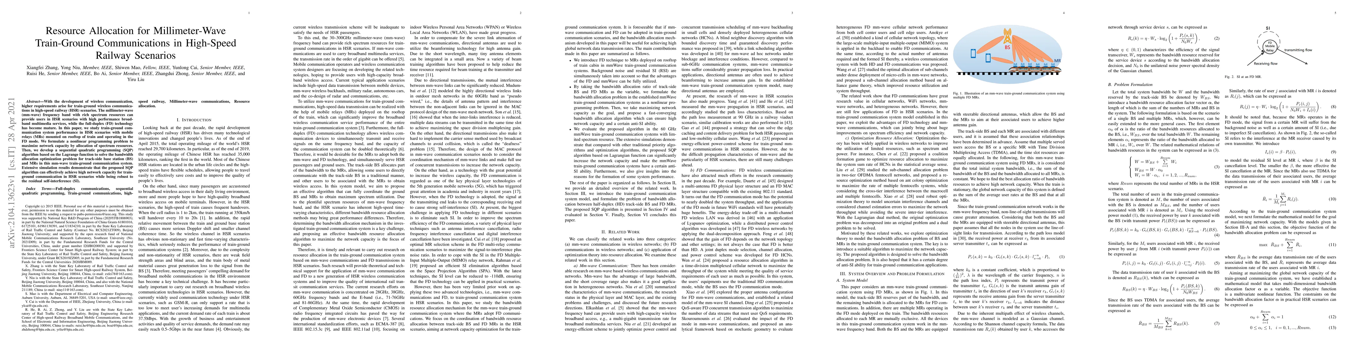 This paper investigates millimeter-wave train-ground communication in high-speed railway scenarios using full-duplex technology and mobile relays. It formulates a nonlinear programming problem to maximize network capacity through spectrum resource allocation, employing a sequential quadratic programming algorithm to solve the optimization problem.