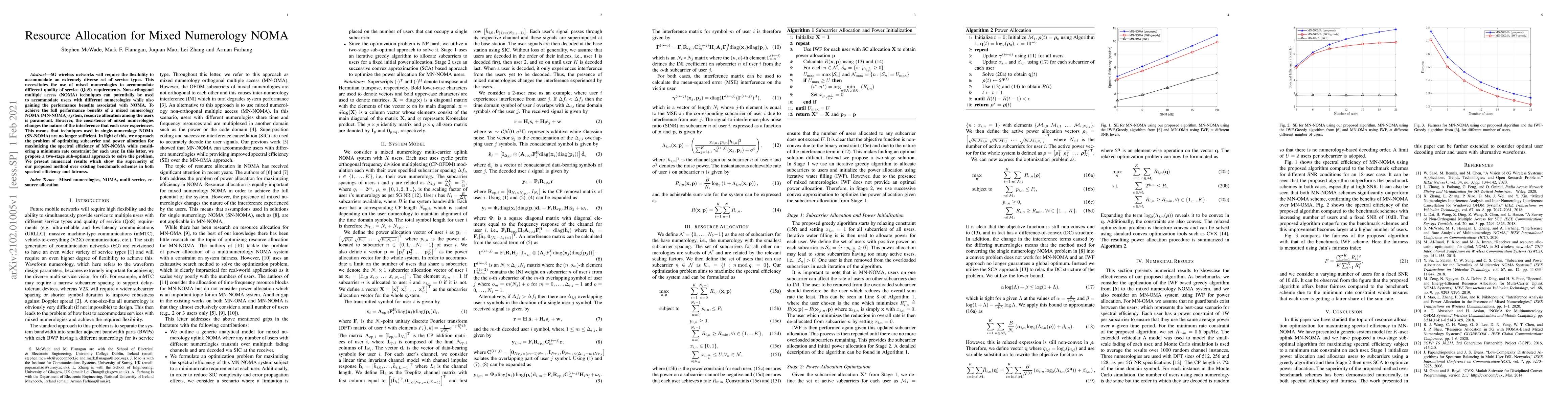 6G wireless networks will require the flexibility to accommodate an extremely diverse set of service types. This necessitates the use of mixed numerologies to accommodate different quality of service (QoS) requirements. Non-orthogonal multiple access (NOMA) techniques can potentially be used to accommodate users with different numerologies while also gaining the performance benefits associated with NOMA. To achieve the full performance benefits of a mixed numerology NOMA (MN-NOMA) system, resource allocation among the users is paramount. However, the coexistence of mixed numerologies changes the nature of the interference that each user experiences. This means that techniques used in single-numerology NOMA (SN-NOMA) are no longer sufficient. In light of this, we approach the problem of optimizing subcarrier and power allocation for maximizing the spectral efficiency of MN-NOMA while considering a minimum rate constraint for each user. In this letter, we propose a two-stage sub-optimal approach to solve the problem. We present numerical results which show the superiority of our proposed method over existing benchmark schemes in both spectral efficiency and fairness.