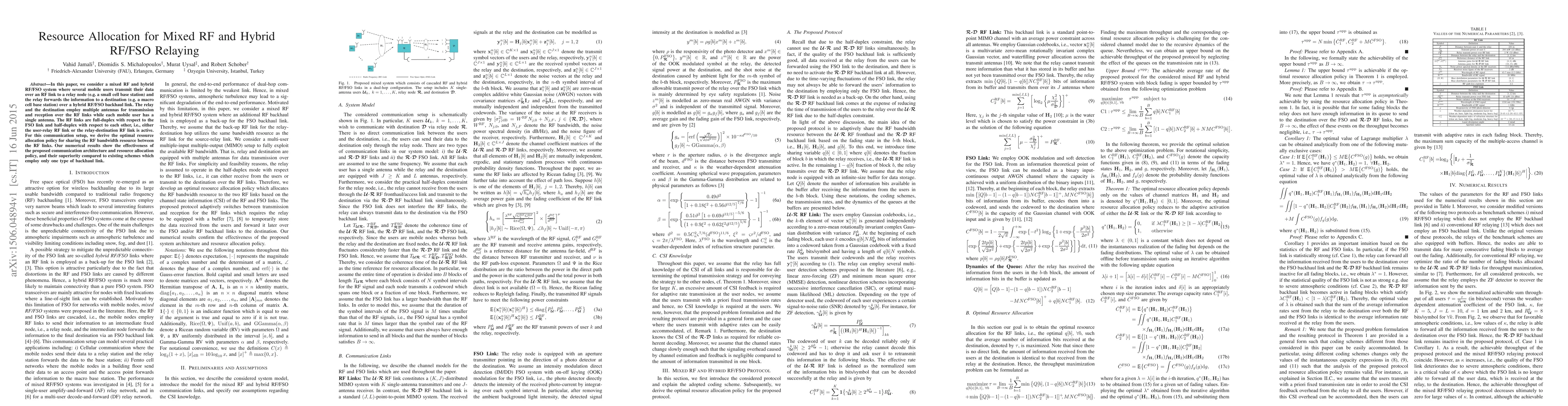 This paper proposes an optimal resource allocation policy for a mixed RF and hybrid RF/FSO communication system, demonstrating its effectiveness through numerical results that outperform existing single-link schemes.