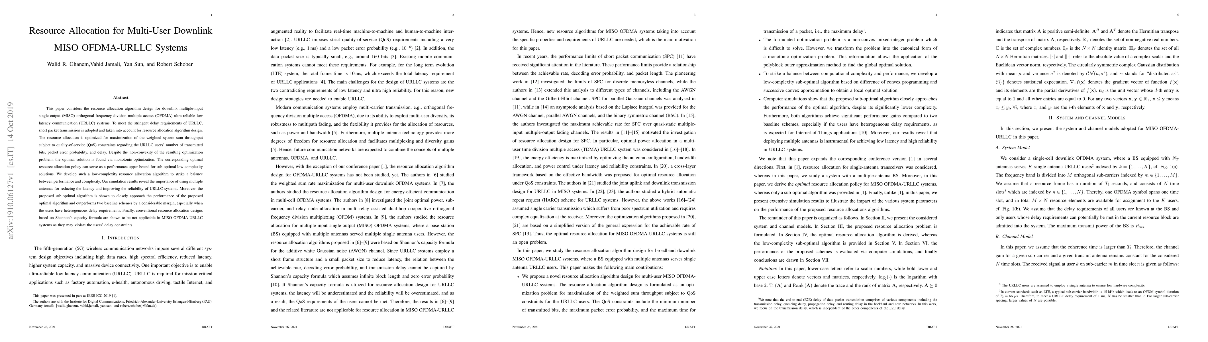 This paper proposes an optimal resource allocation algorithm for MISO OFDMA-URLLC systems, optimizing weighted system sum throughput under stringent delay constraints. A sub-optimal algorithm is developed to balance performance and complexity, demonstrating significant improvements over baseline schemes, especially for users with heterogeneous delays.