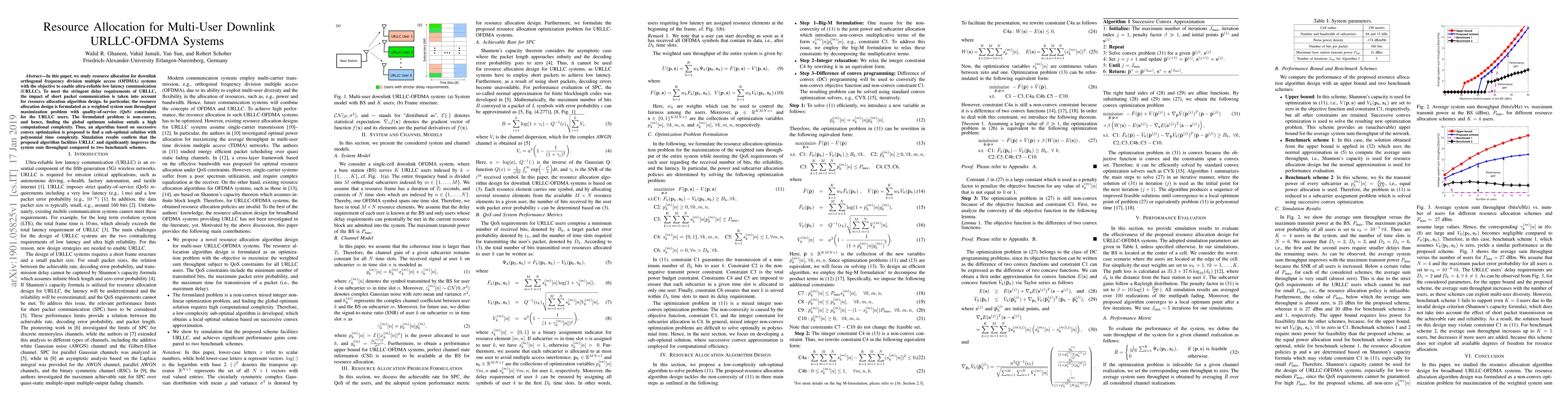 This paper proposes a resource allocation algorithm for multi-user downlink OFDMA systems aimed at ultra-reliable low latency communication (URLLC), addressing short packet communication. The algorithm, based on successive convex optimization, provides a sub-optimal solution with reduced computational complexity, significantly improving system sum throughput compared to benchmark methods.