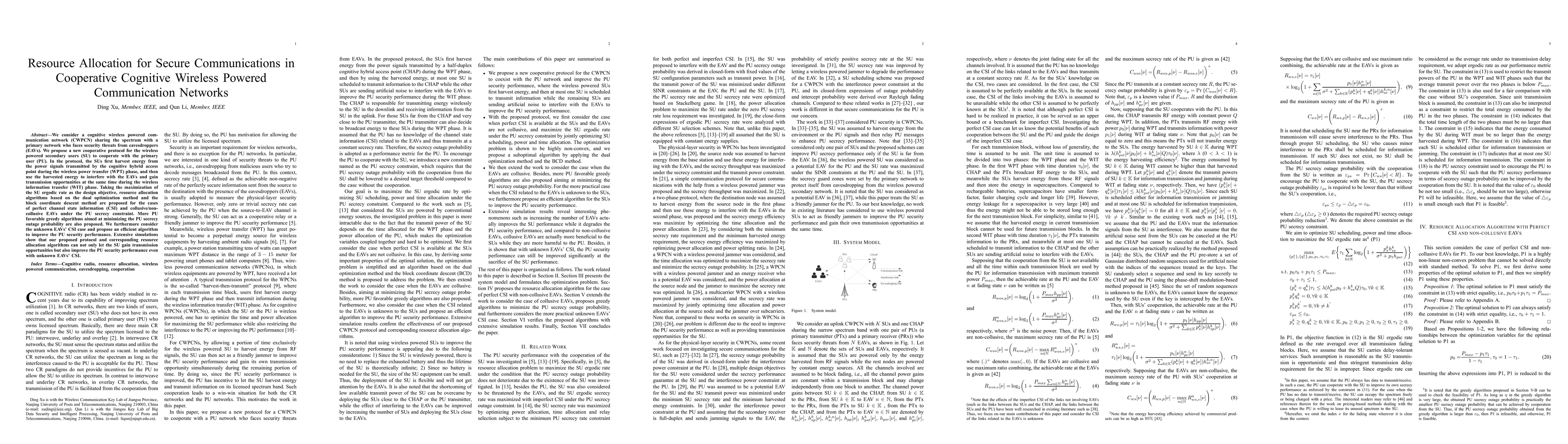 This paper proposes a cooperative protocol for wireless powered secondary users to enhance security in cognitive wireless powered communication networks by interfering with eavesdroppers using harvested energy. Resource allocation algorithms are developed to maximize secondary users' ergodic rate and minimize primary user secrecy outage probability, demonstrating improved security performance through simulations.