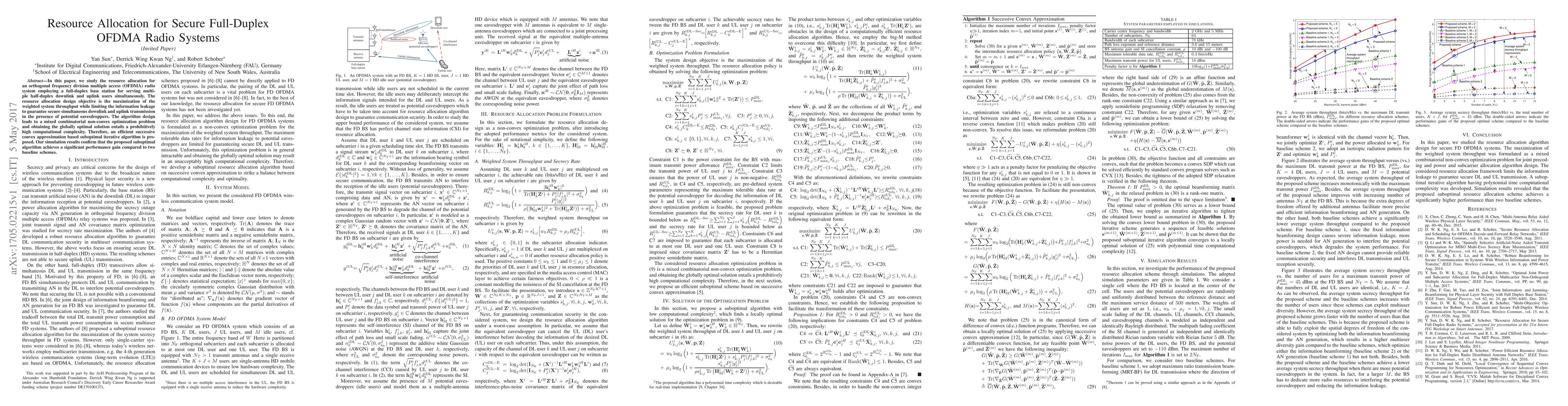 This paper proposes an efficient successive convex approximation algorithm for resource allocation in a secure full-duplex OFDMA system, aiming to maximize weighted system throughput while minimizing information leakage to eavesdroppers. The proposed suboptimal algorithm achieves significant performance gains compared to baseline schemes.