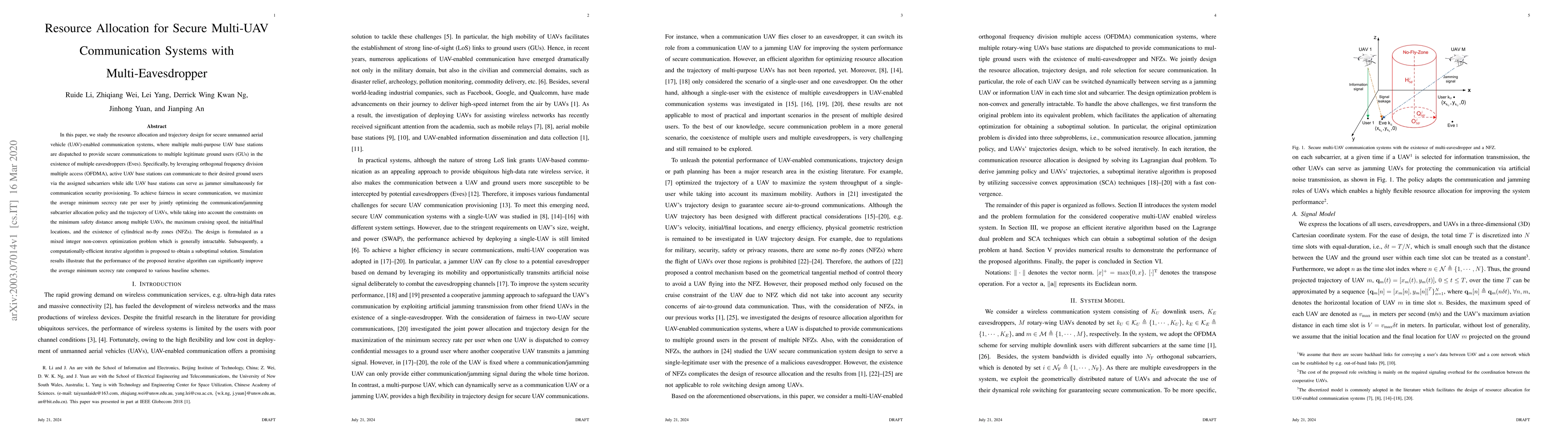 This paper investigates resource allocation and trajectory design for secure UAV communication systems with multiple eavesdroppers, using OFDMA and jammer UAVs to enhance security. An optimization algorithm is proposed to maximize the average minimum secrecy rate, considering various constraints, and simulation results show significant performance improvements.
