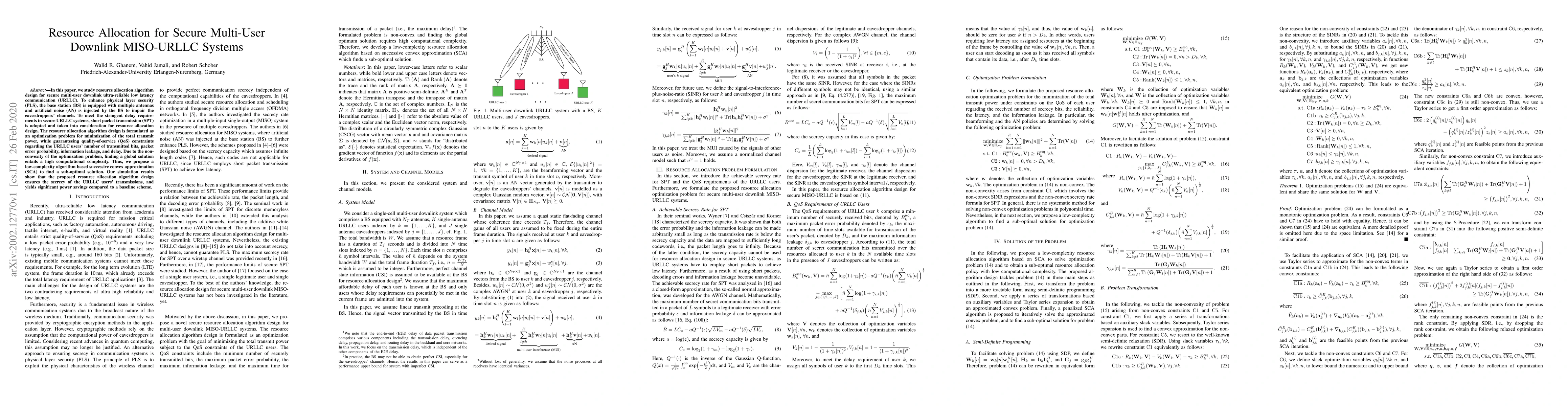 This paper proposes a resource allocation algorithm for secure multi-user downlink ultra-reliable low latency communication (URLLC) systems, utilizing multiple antennas and artificial noise to enhance physical layer security. The algorithm aims to minimize transmit power while meeting stringent QoS constraints, employing a low-complexity successive convex approximation method to achieve a sub-optimal solution.