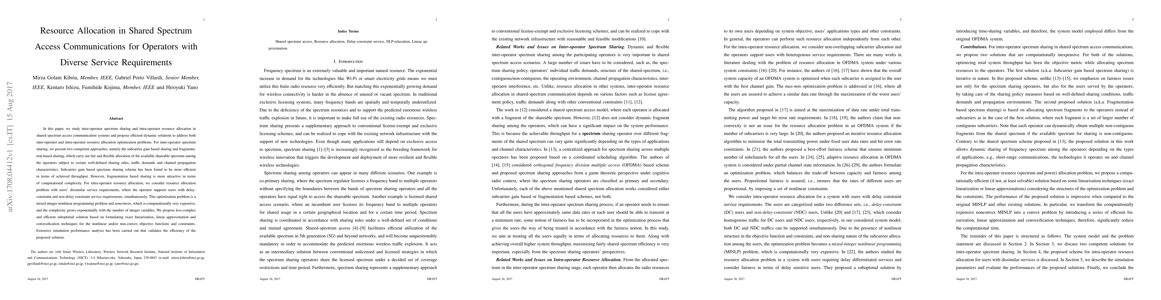 In this paper, we study inter-operator spectrum sharing and intra-operator resource allocation in shared spectrum access communication systems and propose efficient dynamic solutions to address both inter-operator and intra-operator resource allocation optimization problems. For inter-operator spectrum sharing, we present two competent approaches, namely the subcarrier gain based sharing and fragmentation based sharing, which carry out fair and flexible allocation of the available shareable spectrum among the operators subject to certain well-defined sharing rules, traffic demands and channel propagation characteristics. Subcarrier gain based spectrum sharing scheme has been found to be more efficient in terms of achieved throughput. However, fragmentation based sharing is more attractive in terms of computational complexity. For intra-operator resource allocation, we consider resource allocation problem with users' dissimilar service requirements, where the operator supports users with delay-constraint and non-delay constraint service requirements, simultaneously. This optimization problem is a mixed integer nonlinear programming problem and nonconvex, which is computationally very expensive, and the complexity grows exponentially with the number of integer variables. We propose less-complex and efficient suboptimal solution based on formulating exact linearization, linear approximation and convexification techniques for the nonlinear and/or non-convex objective functions and constraints. Extensive simulation performance analysis has been carried out that validates the efficiency of the proposed solution.