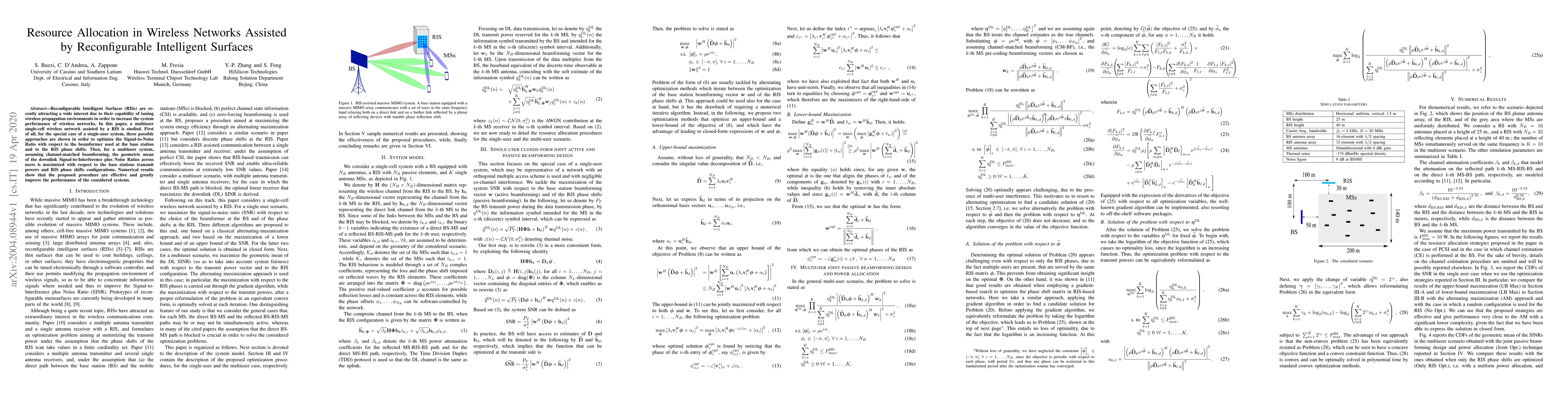 This paper explores resource allocation strategies in wireless networks enhanced by Reconfigurable Intelligent Surfaces (RISs) to optimize performance. It proposes methods for both single-user and multiuser systems, maximizing Signal-to-Noise Ratio and Signal-to-Interference plus Noise Ratio respectively, demonstrating significant performance improvements through numerical results.