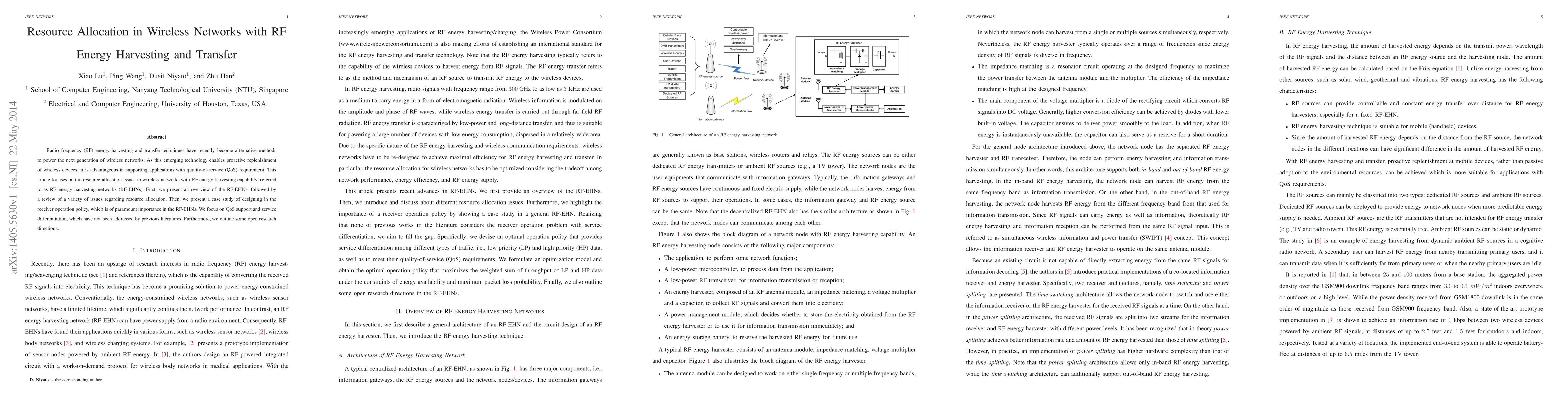 This paper reviews resource allocation in wireless networks utilizing RF energy harvesting and transfer, emphasizing the importance of receiver operation policies for QoS support and service differentiation in RF energy harvesting networks (RF-EHNs). It also highlights open research directions in this emerging technology.