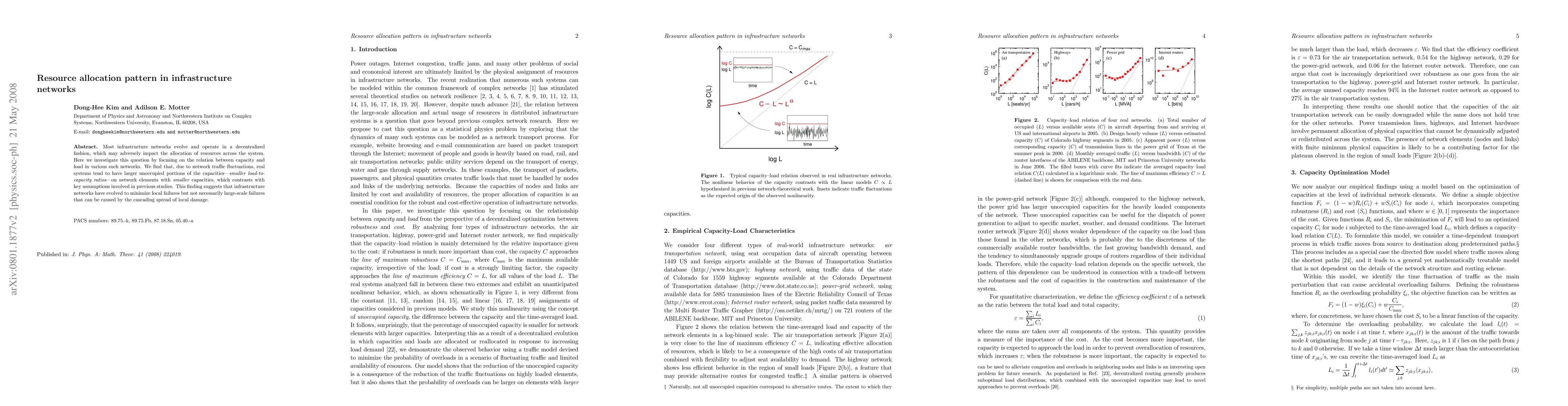Most infrastructure networks evolve and operate in a decentralized fashion, which may adversely impact the allocation of resources across the system. Here we investigate this question by focusing on the relation between capacity and load in various such networks. We find that, due to network traffic fluctuations, real systems tend to have larger unoccupied portions of the capacities--smaller load-to-capacity ratios--on network elements with smaller capacities, which contrasts with key assumptions involved in previous studies. This finding suggests that infrastructure networks have evolved to minimize local failures but not necessarily large-scale failures that can be caused by the cascading spread of local damage.