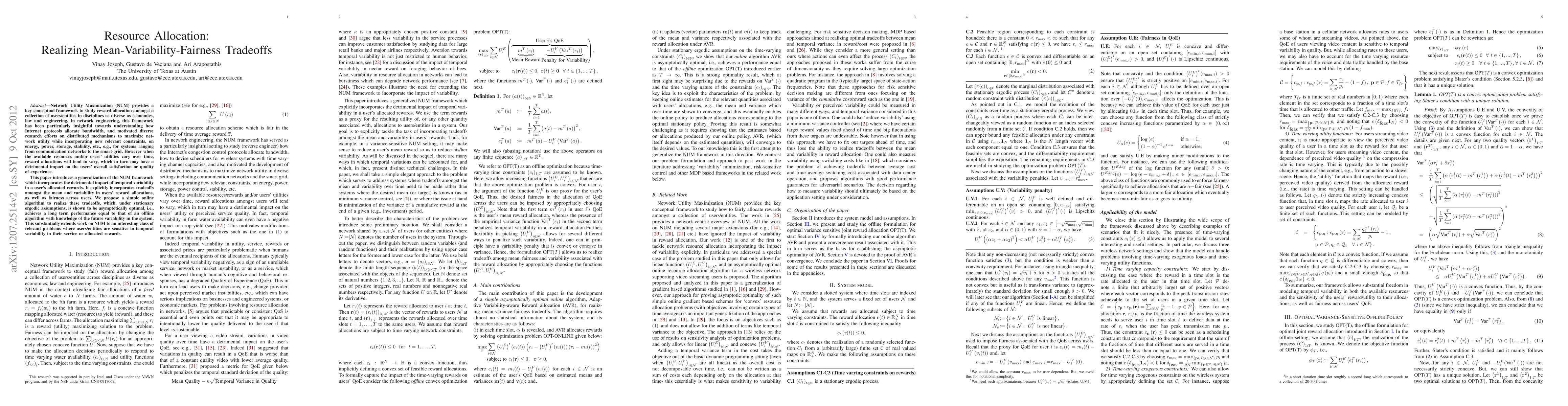 Network Utility Maximization (NUM) provides a key conceptual framework to study reward allocation amongst a collection of users/entities across disciplines as diverse as economics, law and engineering. In network engineering, this framework has been particularly insightful towards understanding how Internet protocols allocate bandwidth, and motivated diverse research efforts on distributed mechanisms to maximize network utility while incorporating new relevant constraints, on energy, power, storage, stability, etc., e.g., for systems ranging from communication networks to the smart-grid. However when the available resources and/or users' utilities vary over time, reward allocations will tend to vary, which in turn may have a detrimental impact on the users' overall satisfaction or quality of experience. This paper introduces a generalization of NUM framework which explicitly incorporates the detrimental impact of temporal variability in a user's allocated rewards. It explicitly incorporates tradeoffs amongst the mean and variability in users' reward allocations, as well as fairness. We propose a simple online algorithm to realize these tradeoffs, which, under stationary ergodic assumptions, is shown to be asymptotically optimal, i.e., achieves a long term performance equal to that of an offline algorithm with knowledge of the future variability in the system. This substantially extends work on NUM to an interesting class of relevant problems where users/entities are sensitive to temporal variability in their service or allocated rewards.