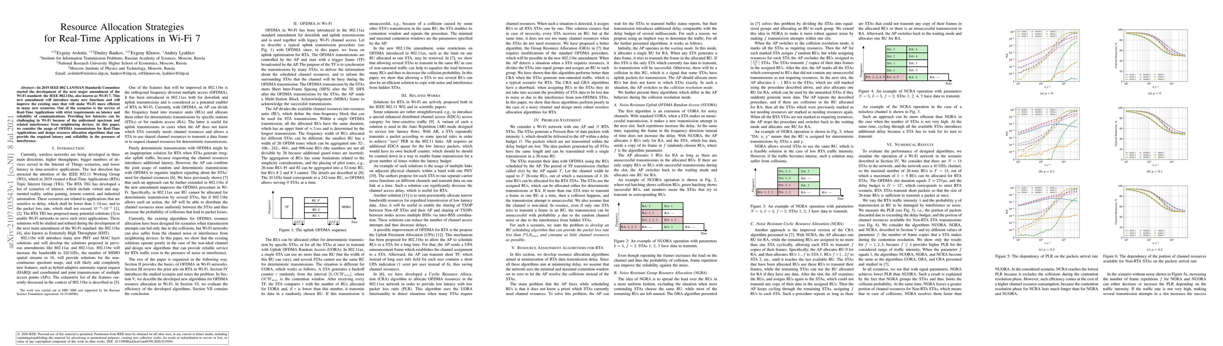 This paper explores resource allocation strategies using OFDMA transmissions in Wi-Fi 7 to enhance the efficiency of real-time applications, focusing on achieving low latencies and high reliability despite interference from unlicensed spectrum usage. The proposed algorithms aim to optimize resource allocation for real-time communication needs.