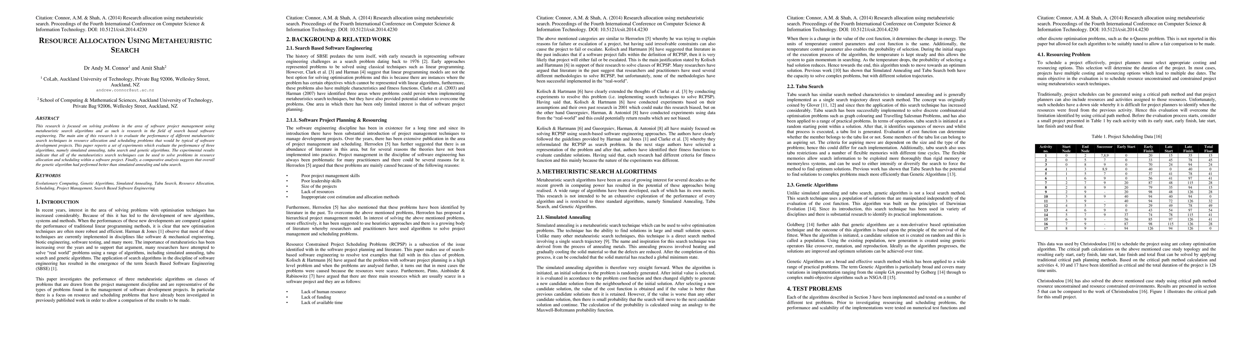 This research applied three metaheuristic search algorithms to solve scheduling and planning problems in software development projects.