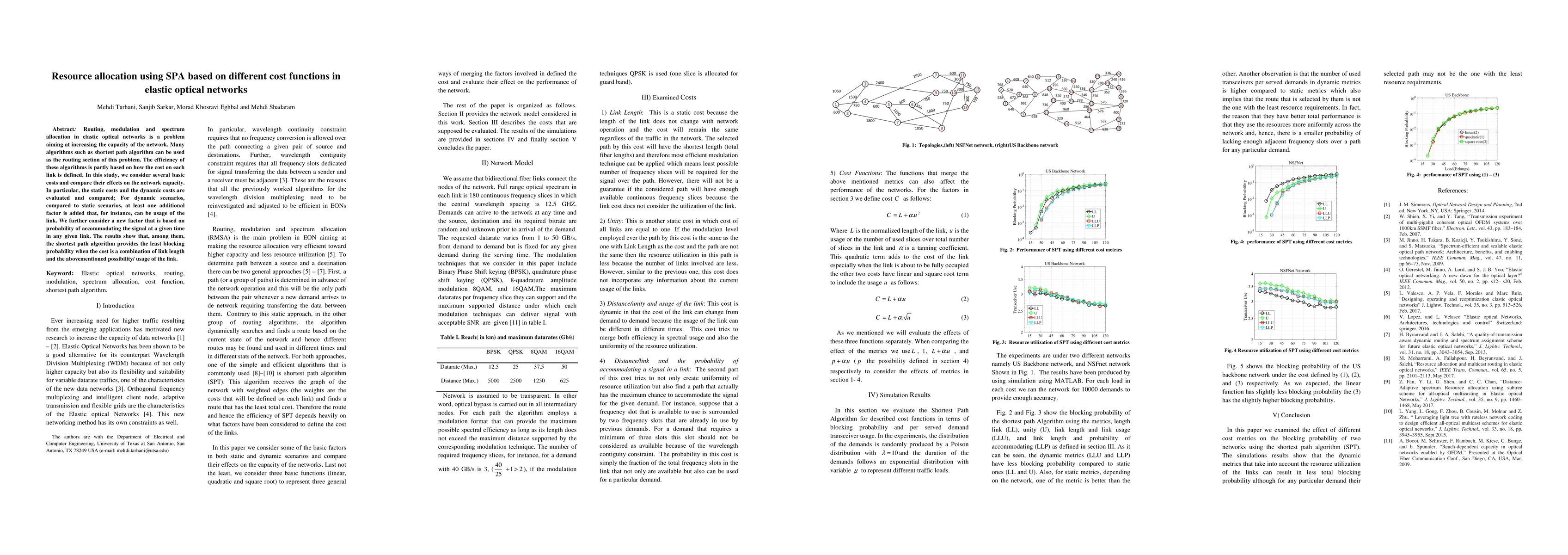 This study compares different cost functions for routing and spectrum allocation in elastic optical networks to improve network capacity. It finds that a combination of link length and usage/probability of accommodating the signal provides the least blocking probability.