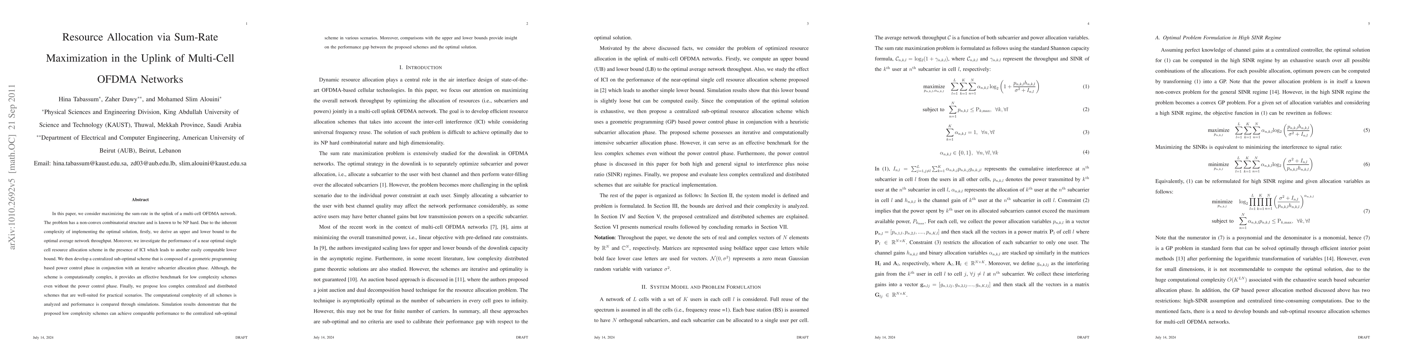 In this paper, we consider maximizing the sum-rate in the uplink of a multi-cell OFDMA network. The problem has a non-convex combinatorial structure and is known to be NP hard. Due to the inherent complexity of implementing the optimal solution, firstly, we derive an upper and lower bound to the optimal average network throughput. Moreover, we investigate the performance of a near optimal single cell resource allocation scheme in the presence of ICI which leads to another easily computable lower bound. We then develop a centralized sub-optimal scheme that is composed of a geometric programming based power control phase in conjunction with an iterative subcarrier allocation phase. Although, the scheme is computationally complex, it provides an effective benchmark for low complexity schemes even without the power control phase. Finally, we propose less complex centralized and distributed schemes that are well-suited for practical scenarios. The computational complexity of all schemes is analyzed and performance is compared through simulations. Simulation results demonstrate that the proposed low complexity schemes can achieve comparable performance to the centralized sub-optimal scheme in various scenarios. Moreover, comparisons with the upper and lower bounds provide insight on the performance gap between the proposed schemes and the optimal solution.