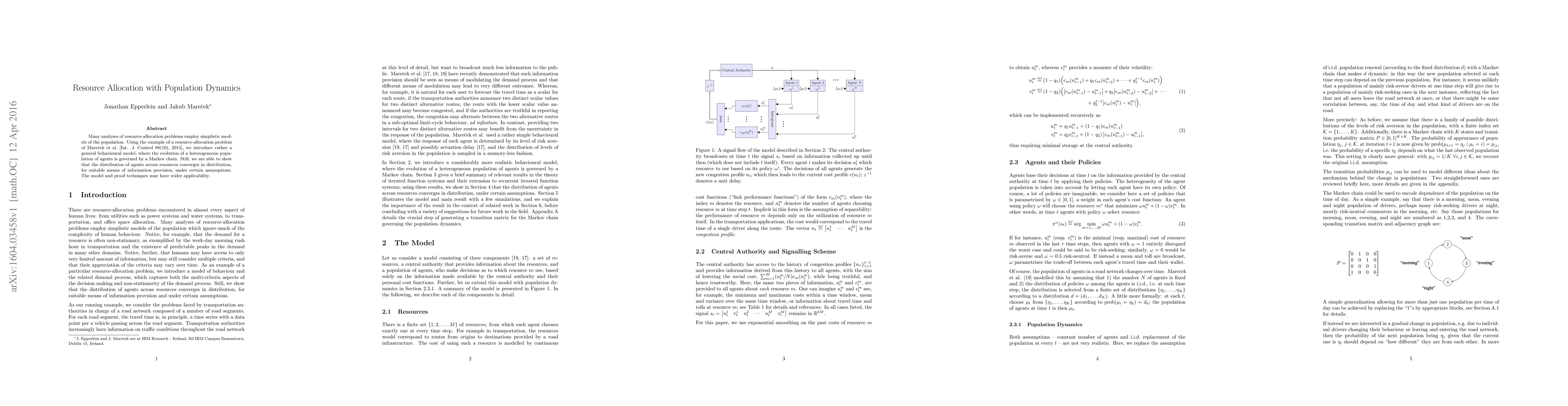 Many analyses of resource-allocation problems employ simplistic models of the population. Using the example of a resource-allocation problem of Marecek et al. [arXiv:1406.7639], we introduce rather a general behavioural model, where the evolution of a heterogeneous population of agents is governed by a Markov chain. Still, we are able to show that the distribution of agents across resources converges in distribution, for suitable means of information provision, under certain assumptions. The model and proof techniques may have wider applicability.
