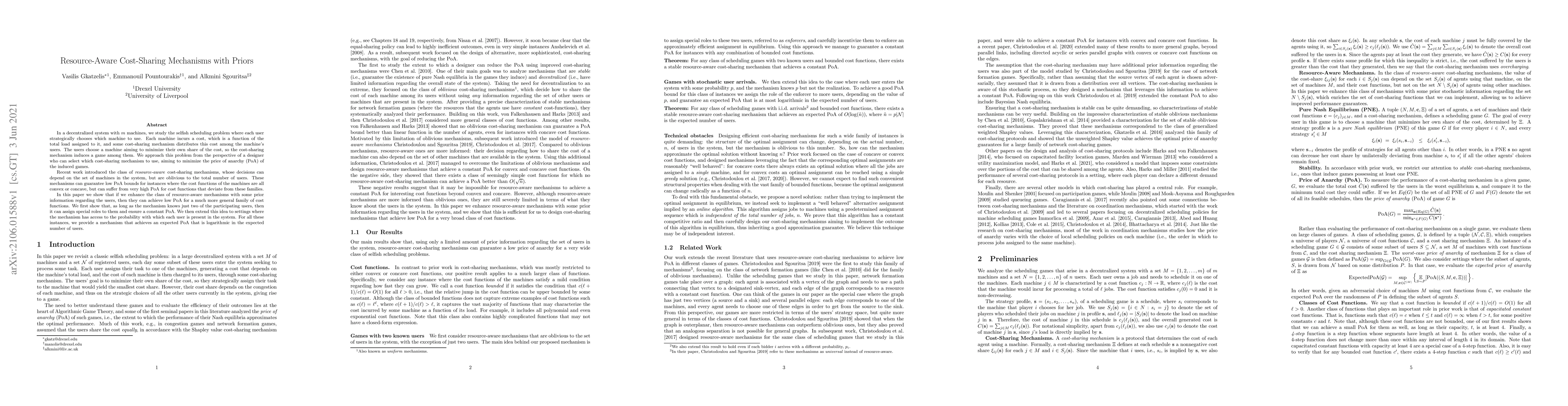 This paper investigates resource-aware cost-sharing mechanisms in decentralized systems where users choose machines based on their cost-sharing burden. It demonstrates that incorporating prior information about users, such as their presence probabilities, can significantly reduce the price of anarchy (PoA) for a broader range of cost functions, achieving an expected PoA logarithmic in the expected number of users.