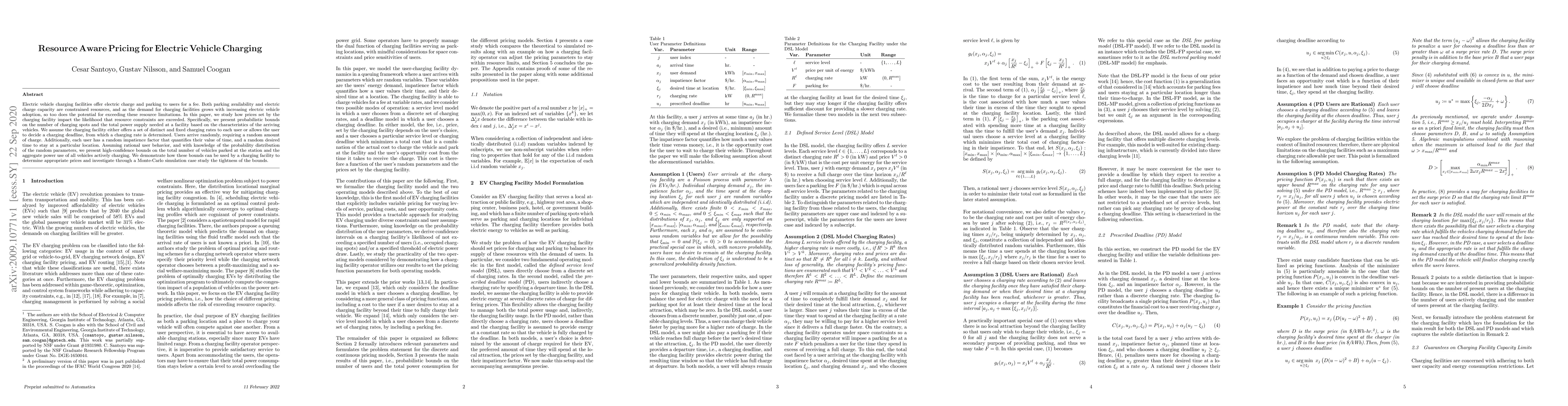 This paper explores how pricing strategies at electric vehicle charging facilities can mitigate resource constraints by setting probabilistic bounds on the number of charging spots and power supply needed. It uses rational user behavior and random arrival patterns to determine high-confidence limits on vehicle parking and power usage, aiding in optimal pricing decisions.