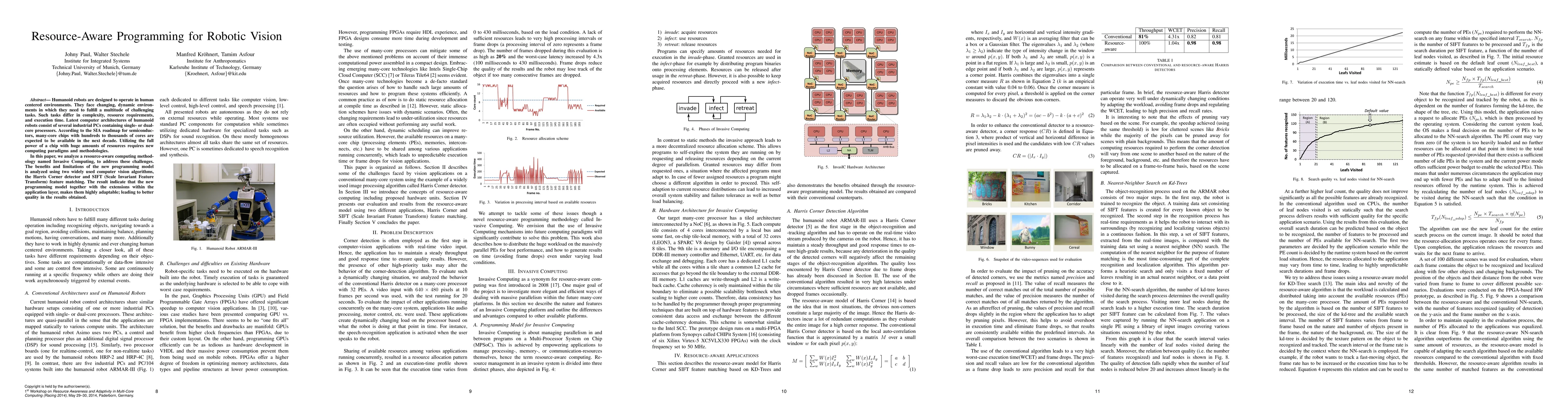 Humanoid robots are designed to operate in human centered environments. They face changing, dynamic environments in which they need to fulfill a multitude of challenging tasks. Such tasks differ in complexity, resource requirements, and execution time. Latest computer architectures of humanoid robots consist of several industrial PCs containing single- or dual-core processors. According to the SIA roadmap for semiconductors, many-core chips with hundreds to thousands of cores are expected to be available in the next decade. Utilizing the full power of a chip with huge amounts of resources requires new computing paradigms and methodologies. In this paper, we analyze a resource-aware computing methodology named Invasive Computing, to address these challenges. The benefits and limitations of the new programming model is analyzed using two widely used computer vision algorithms, the Harris Corner detector and SIFT (Scale Invariant Feature Transform) feature matching. The result indicate that the new programming model together with the extensions within the application layer, makes them highly adaptable; leading to better quality in the results obtained.