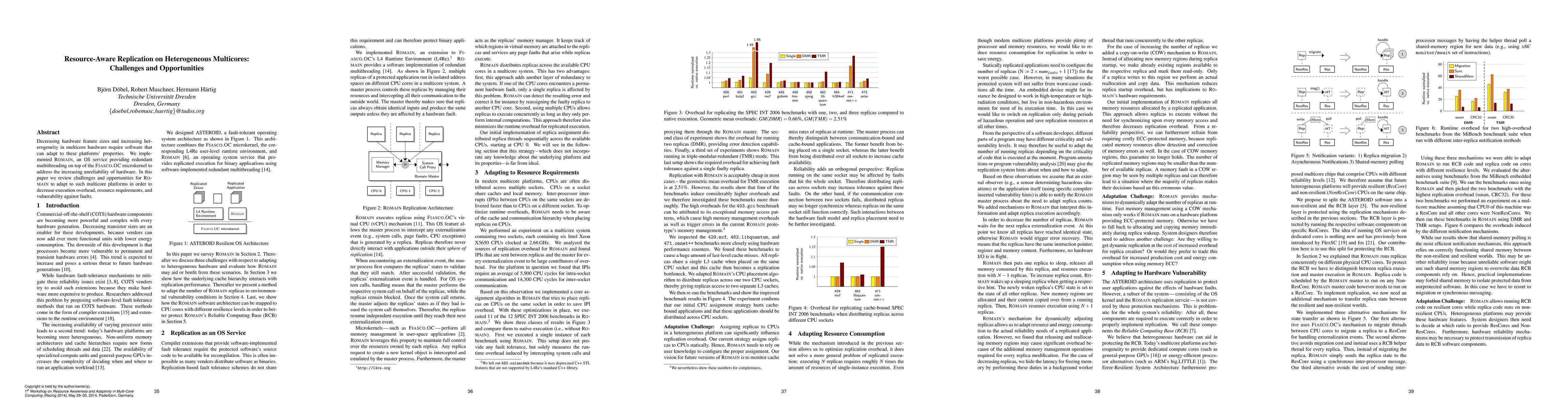 Decreasing hardware feature sizes and increasing heterogeneity in multicore hardware require software that can adapt to these platforms' properties. We implemented ROMAIN, an OS service providing redundant multithreading on top of the FIASCO.OC microkernel to address the increasing unreliability of hardware. In this paper we review challenges and opportunities for ROMAIN to adapt to such multicore platforms in order to decrease execution overhead, resource requirements, and vulnerability against faults.