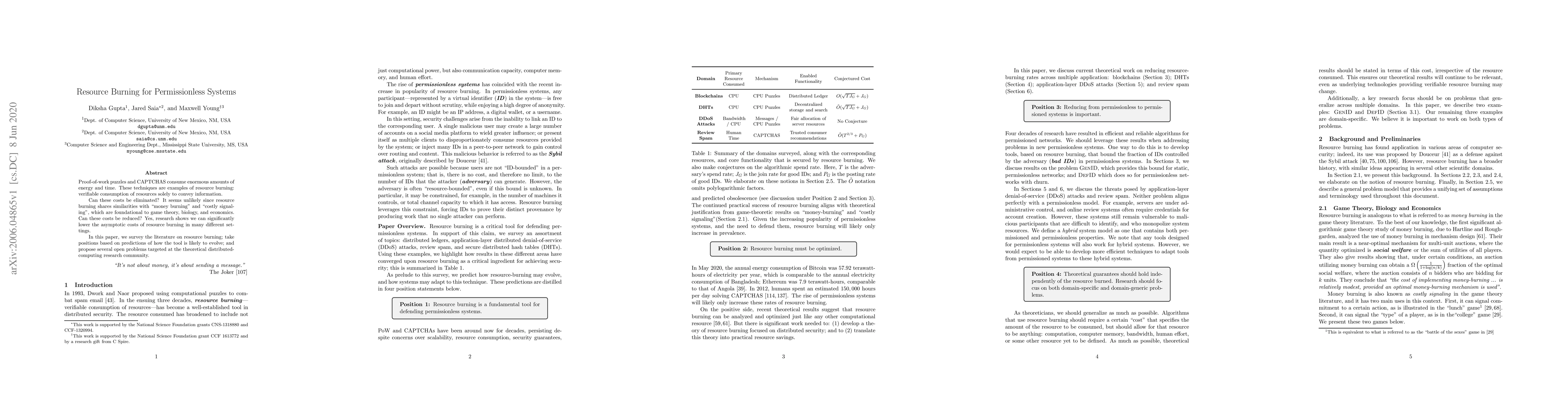 This paper surveys the concept of resource burning in permissionless systems, highlighting its energy-intensive nature and its foundational role in game theory and economics. It proposes methods to reduce the asymptotic costs of resource burning and poses several open problems for future theoretical distributed-computing research.