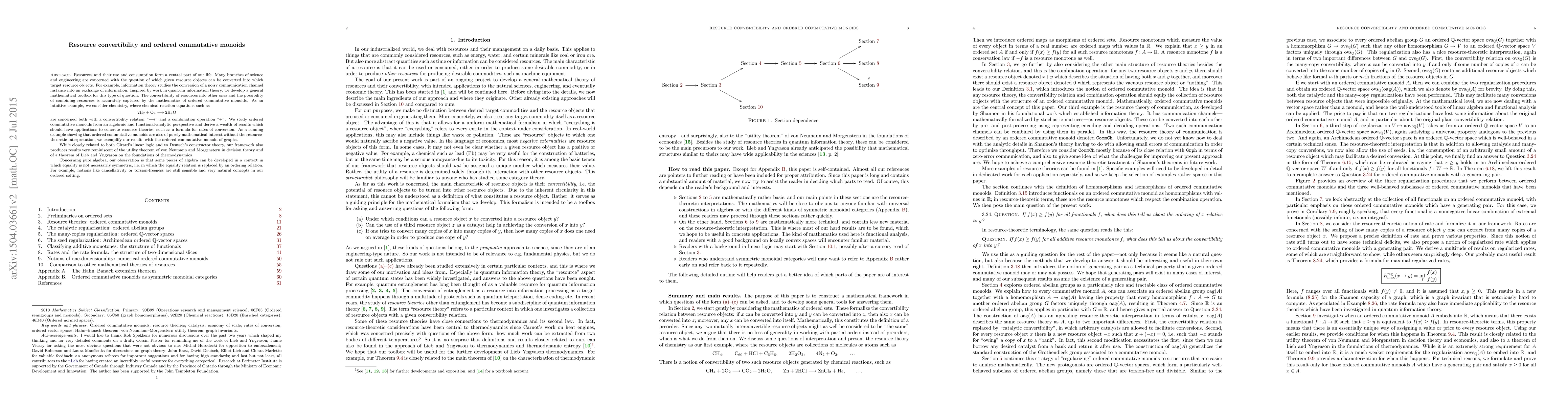 This paper develops a mathematical framework using ordered commutative monoids to study the convertibility of resources, inspired by chemistry and quantum information theory. It presents algebraic and functional-analytic results with potential applications to resource theories and exemplifies the framework's utility through the study of ordered commutative monoids of graphs.