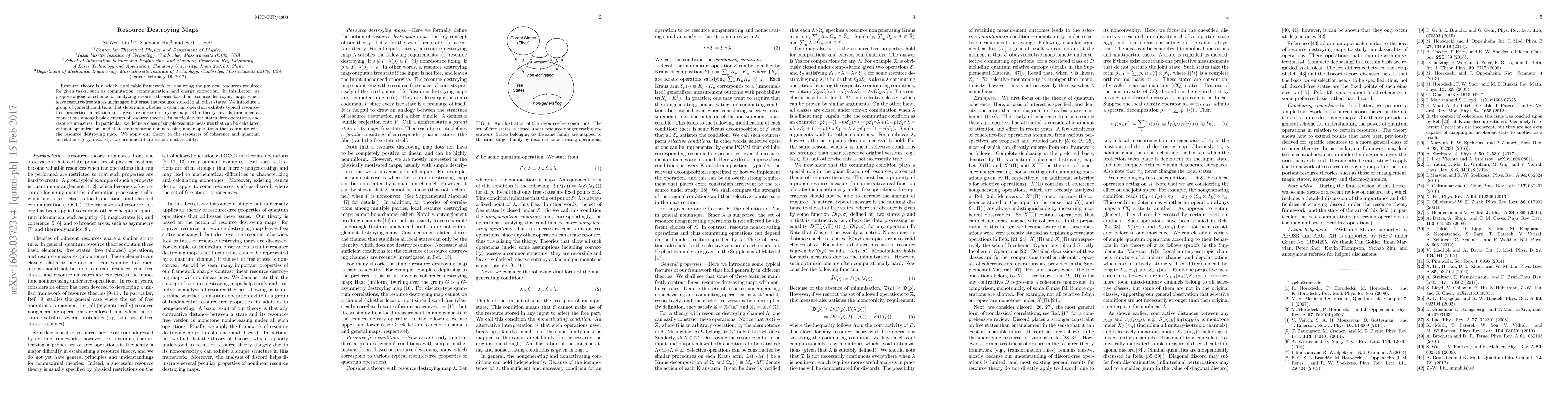 Resource theory is a widely-applicable framework for analyzing the physical resources required for given tasks, such as computation, communication, and energy extraction. In this paper, we propose a general scheme for analyzing resource theories based on resource destroying maps, which leave resource-free states unchanged but erase the resource stored in all other states. We introduce a group of general conditions that determine whether a quantum operation exhibits typical resource-free properties in relation to a given resource destroying map. Our theory reveals fundamental connections among basic elements of resource theories, in particular, free states, free operations, and resource measures. In particular, we define a class of simple resource measures that can be calculated without optimization, and that are monotone nonincreasing under operations that commute with the resource destroying map. We apply our theory to the resources of coherence and quantum correlations (e.g., discord), two prominent features of nonclassicality.