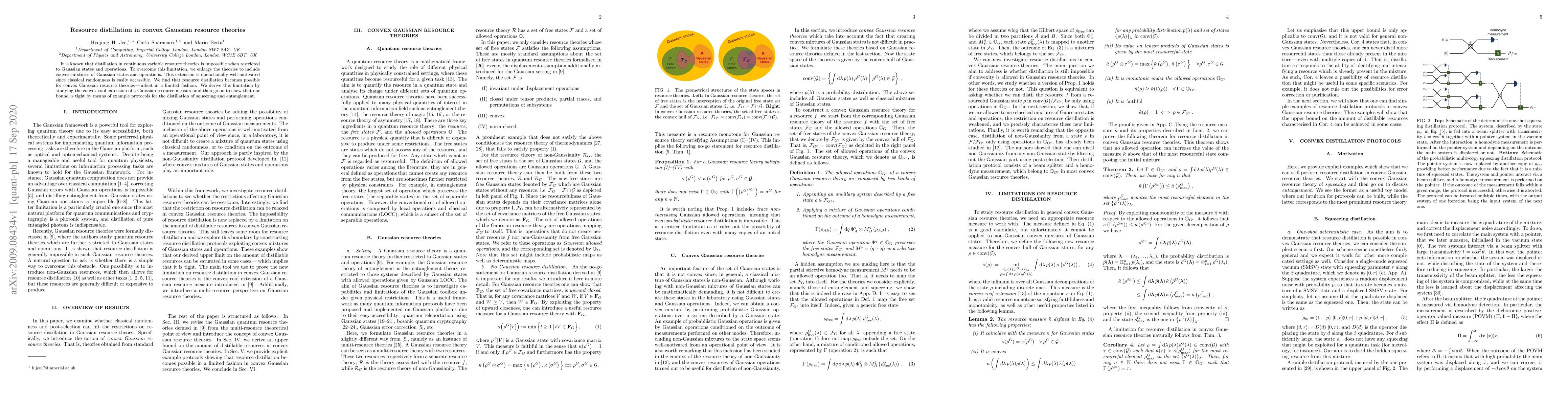 This paper explores the possibility of resource distillation in convex Gaussian resource theories, showing that by extending the framework to include convex mixtures of Gaussian states and operations, distillation becomes feasible albeit with certain limitations. The authors derive and demonstrate a tight bound on these limitations through example protocols for squeezing and entanglement distillation.